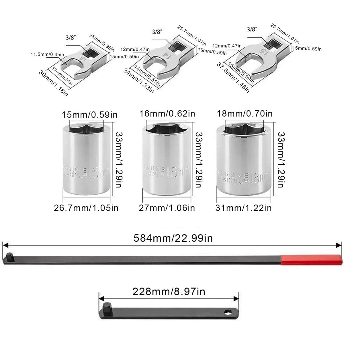 8PCS Idler Pulley Belt Tensioner Wrench Set Car Disassembly Adjustment Tool Kit