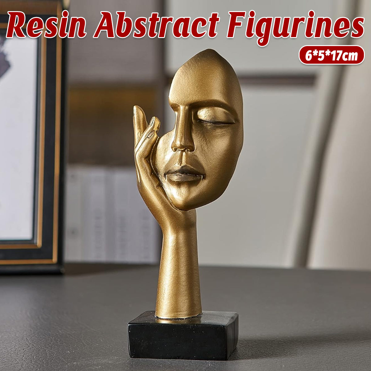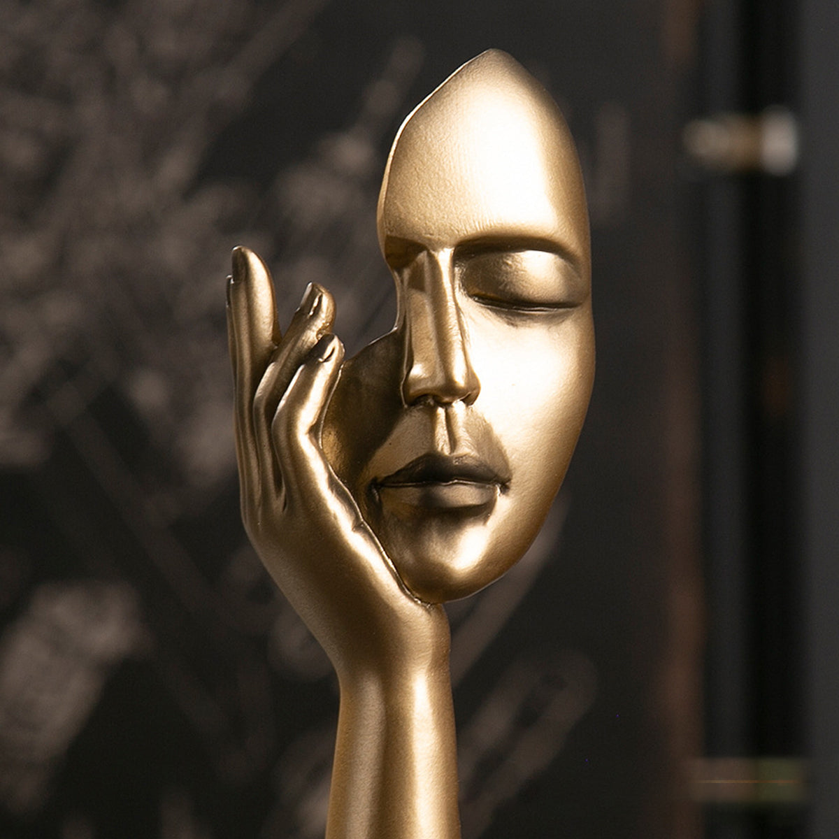 Abstract Face Resin Sculpture in Gold with Black Base for Living Room