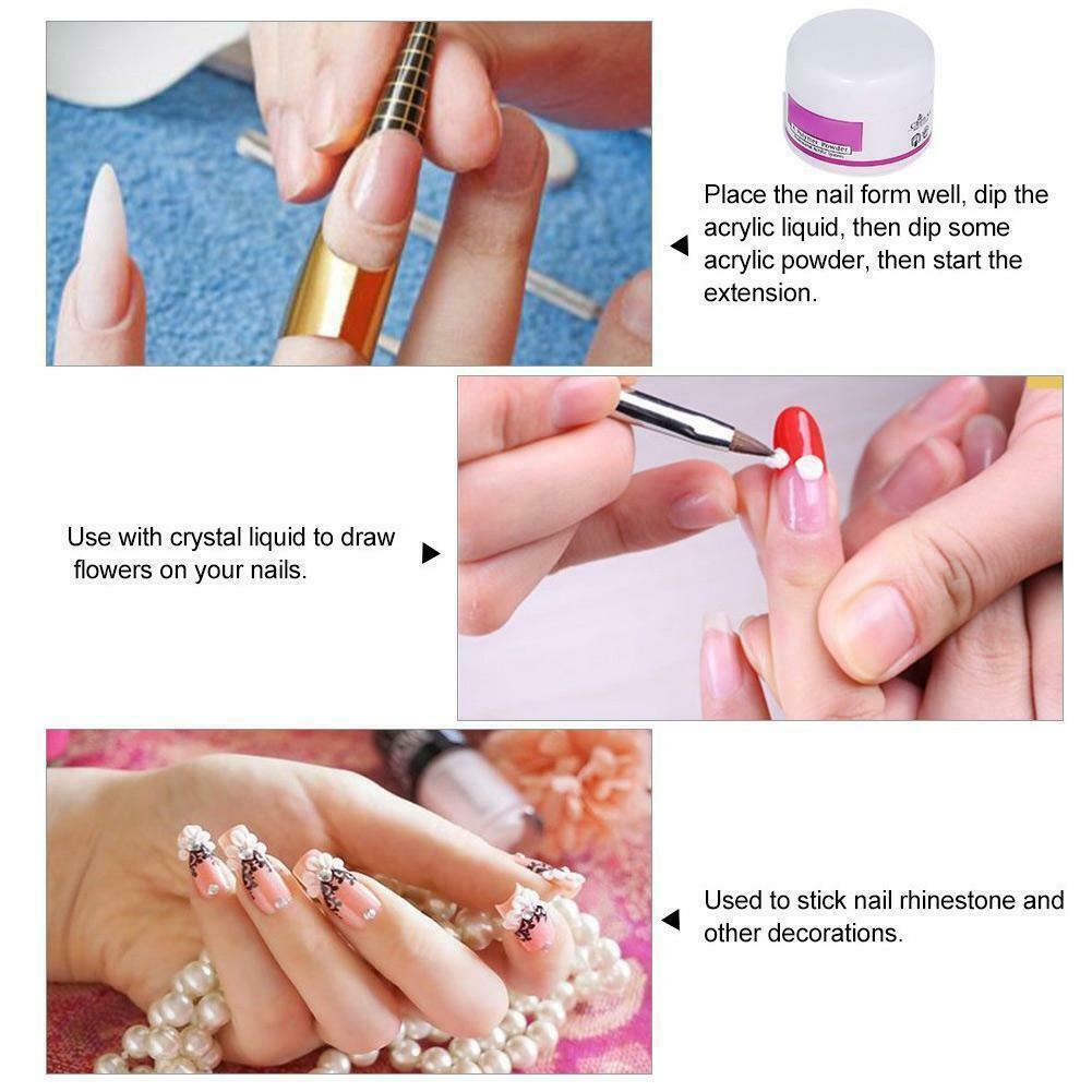 Acrylic Nail Art Starter Kit Clear White Pink Acrylic Powder 120Ml Liquid Set