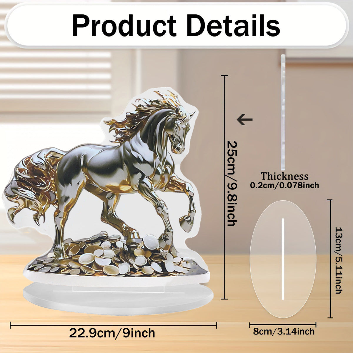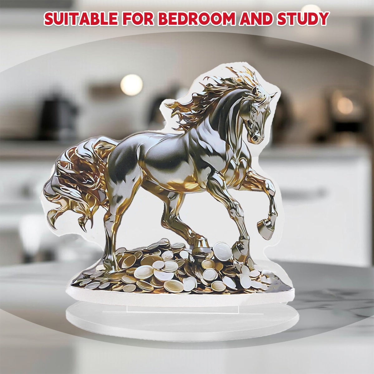 Acrylic Table Decoration Golden Horse on Coin Waterproof Wear Resistant Ornament