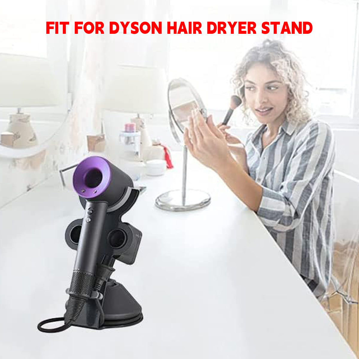 Freestanding Dyson Hair Dryer Holder Punch-Free Stand with Storage Slots