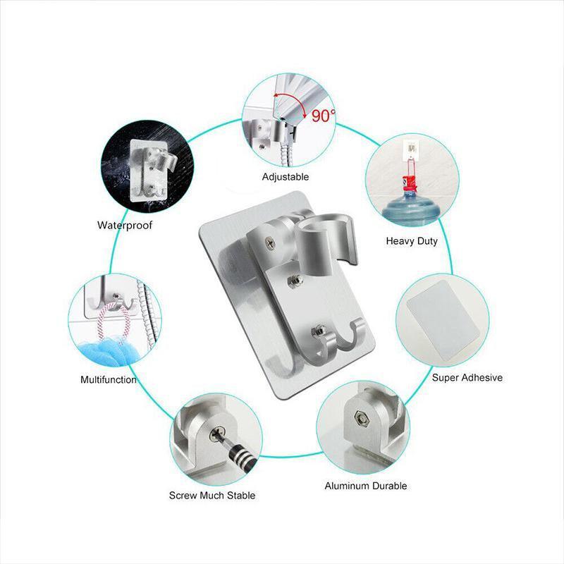 Adjustable Bracket Suction Shower Head Handset Holder Bathroom Wall Mount +Hooks