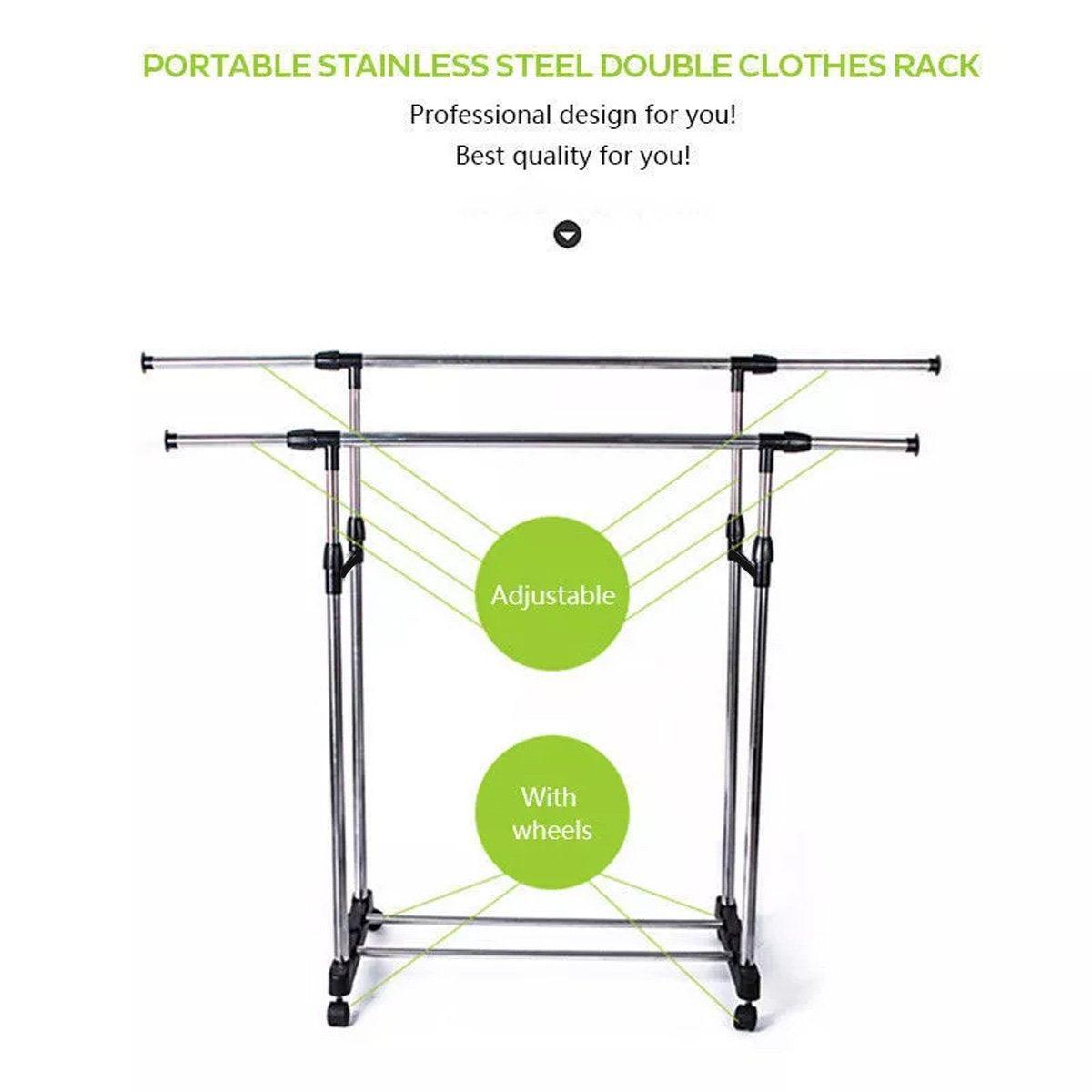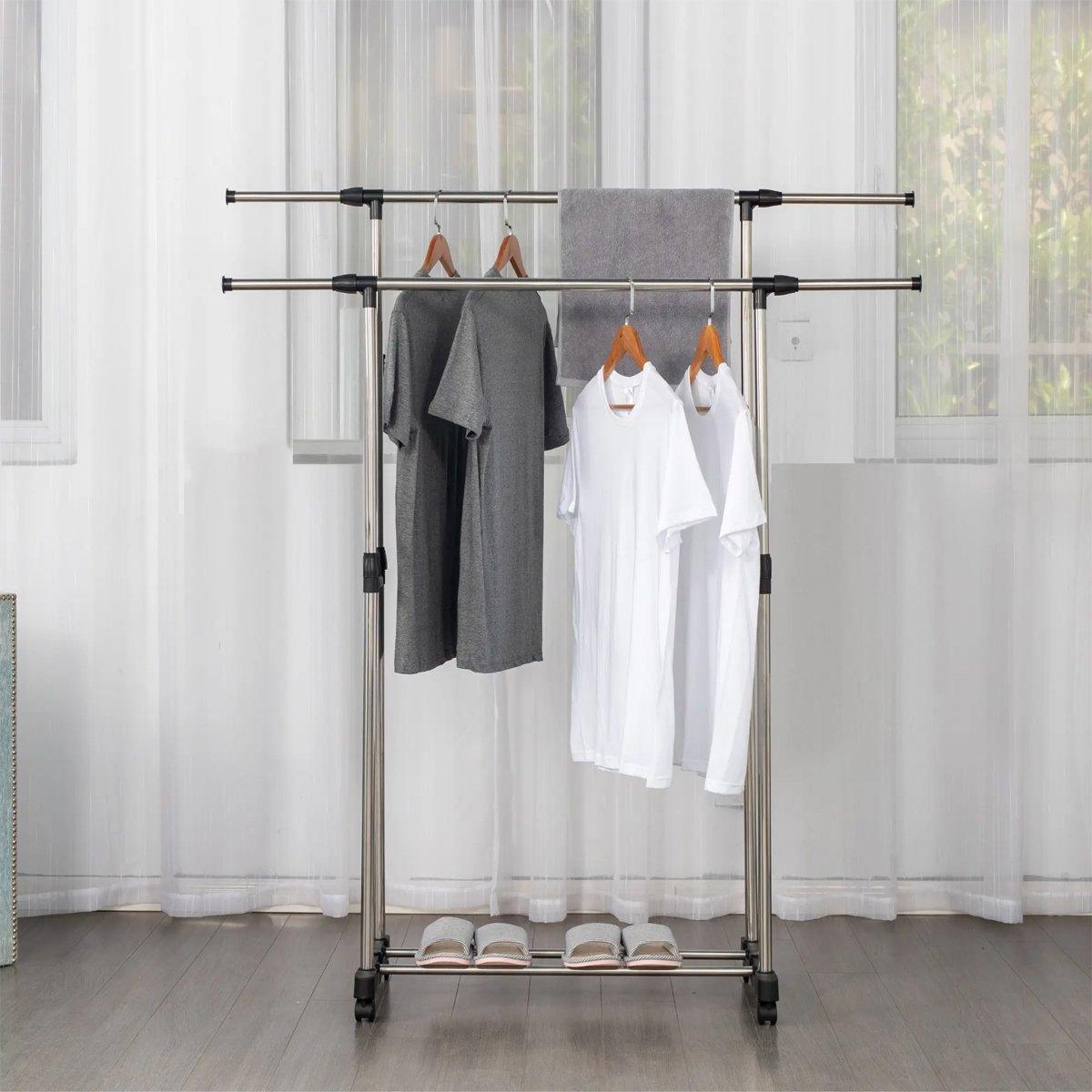 Adjustable Double Clothes Rack Stainless Steel Garment Holder Coat Hanger Stand