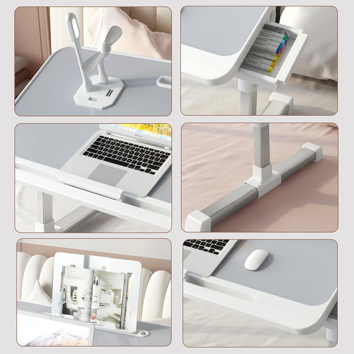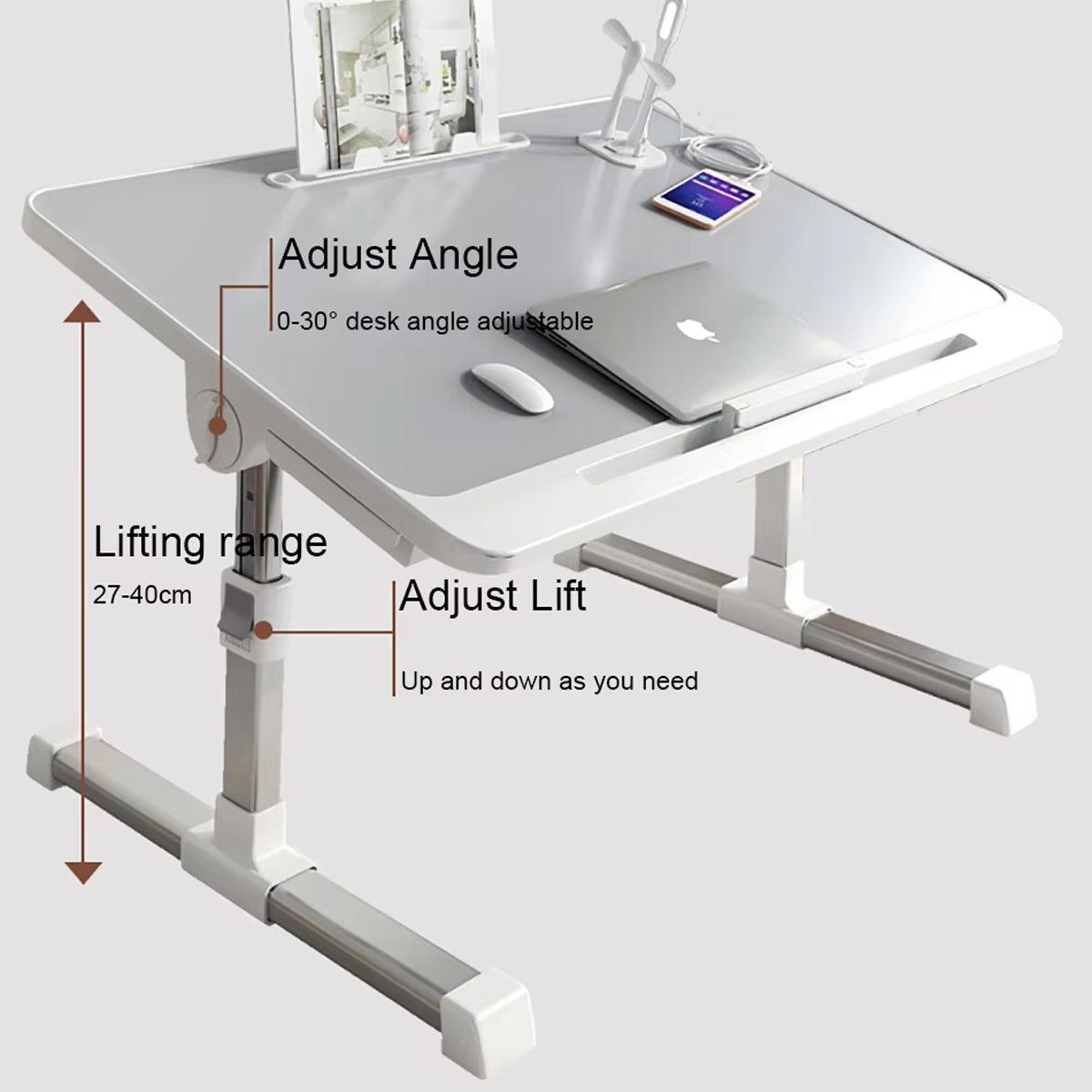 Adjustable Laptop Bed Tray Desk with USB Charging Port for Work and Study