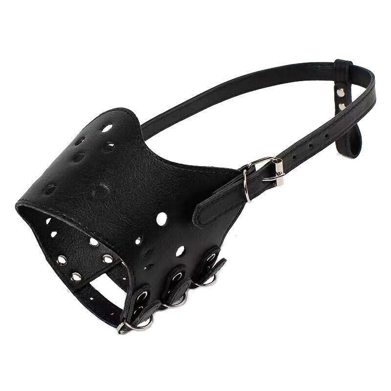 Adjustable Leather Pet Dog Mask Mouth Muzzle Anti Barking Bite Stop Chewing Black