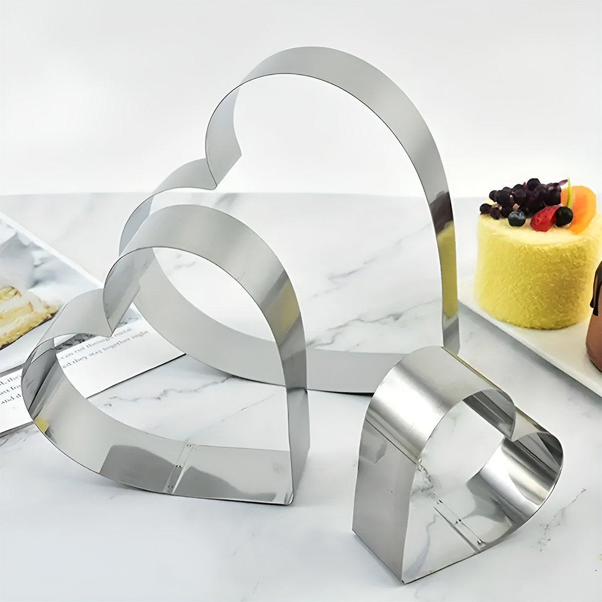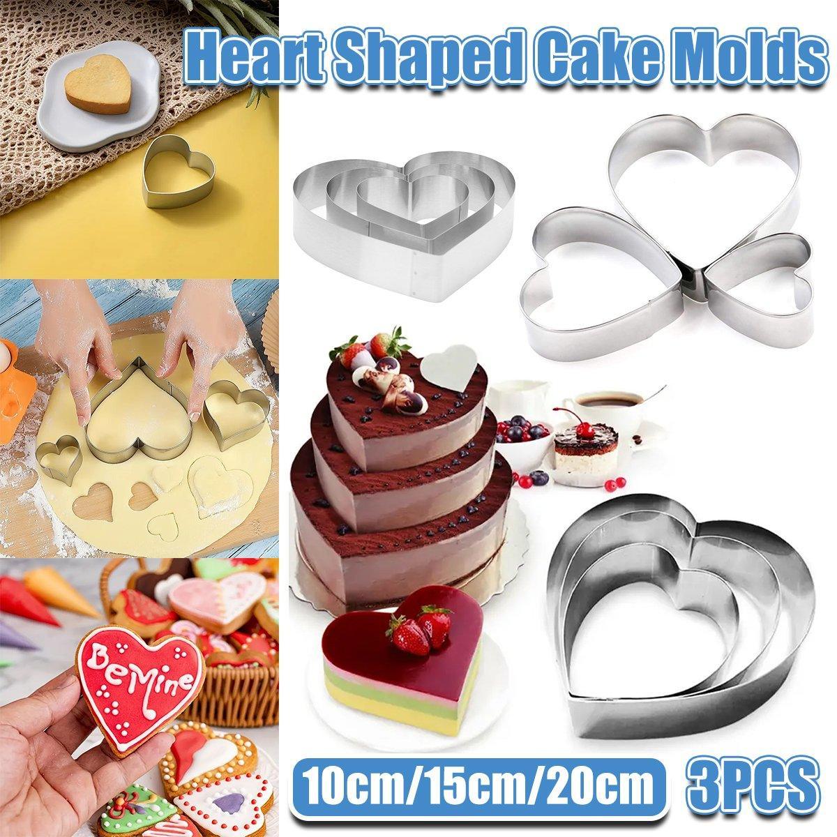 3X Stainless Steel Cake Mold 10/15/20cm Heart Baking Cake Ring For Mousse Party