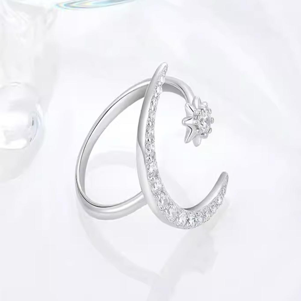 Alloy Star Moon Opening Rings Rhinestone Crescent Couple Ring Women