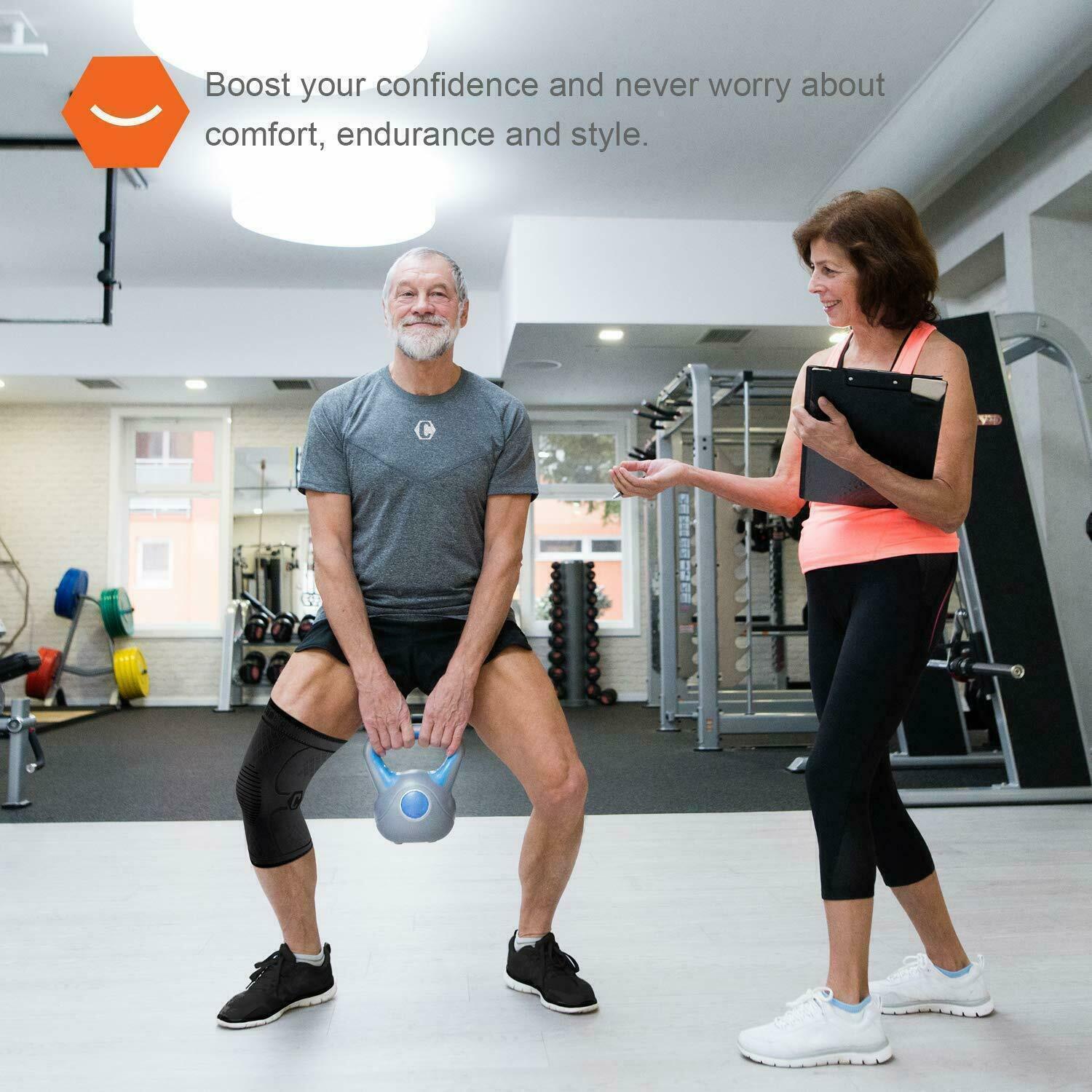 Four-way stretch capability to provide Full Knee support and firm compression to the knee, but without restricting knee joint motion movement.
