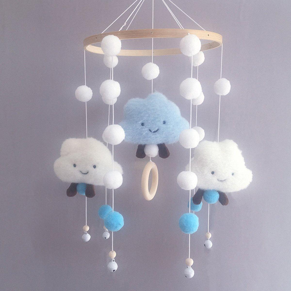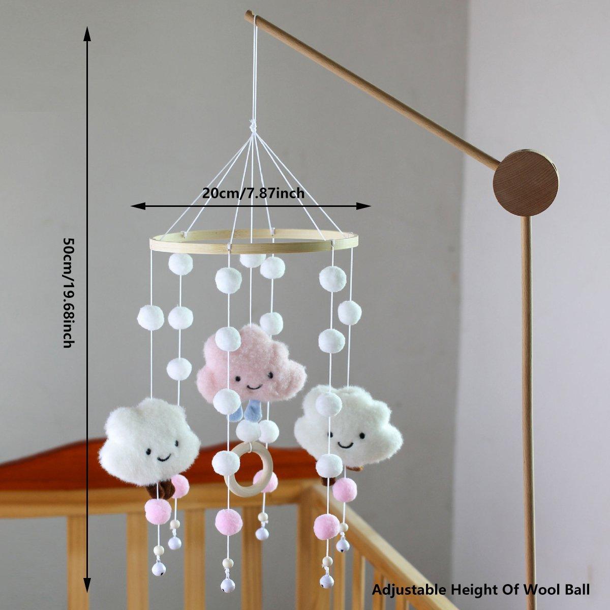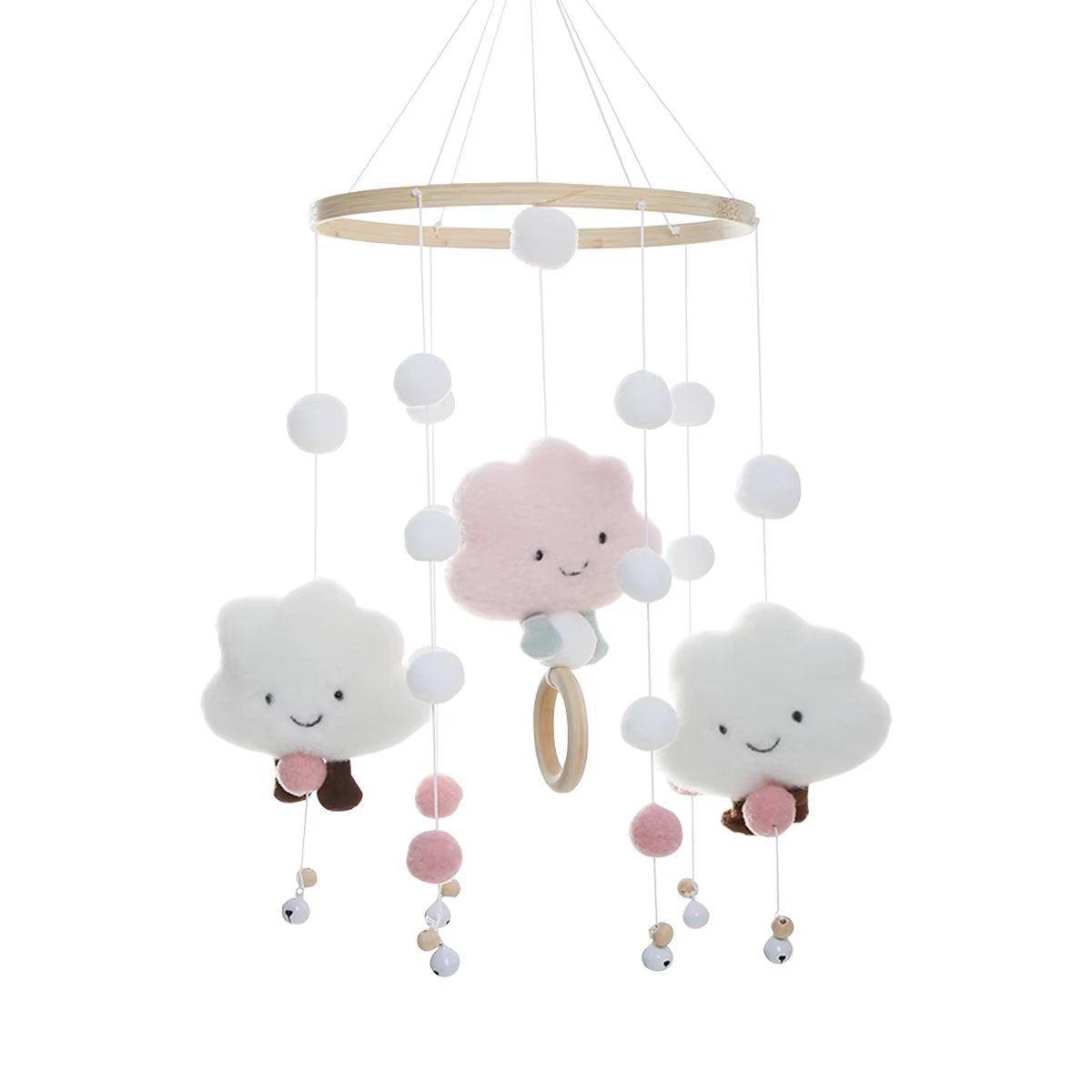 Felt Ball Cloud Mobile Hanging Bed Bell Wind Chime for Nursery or Room Decor