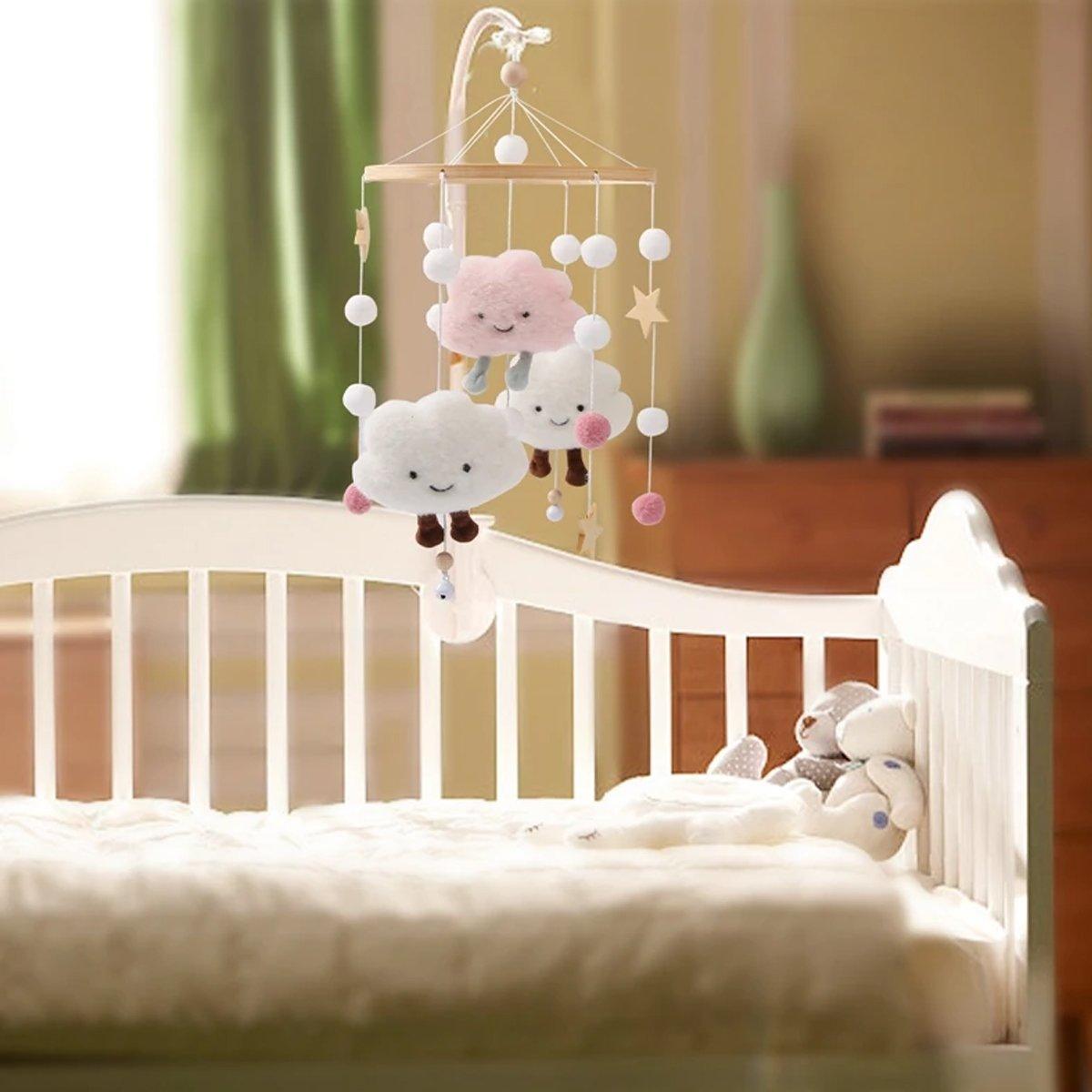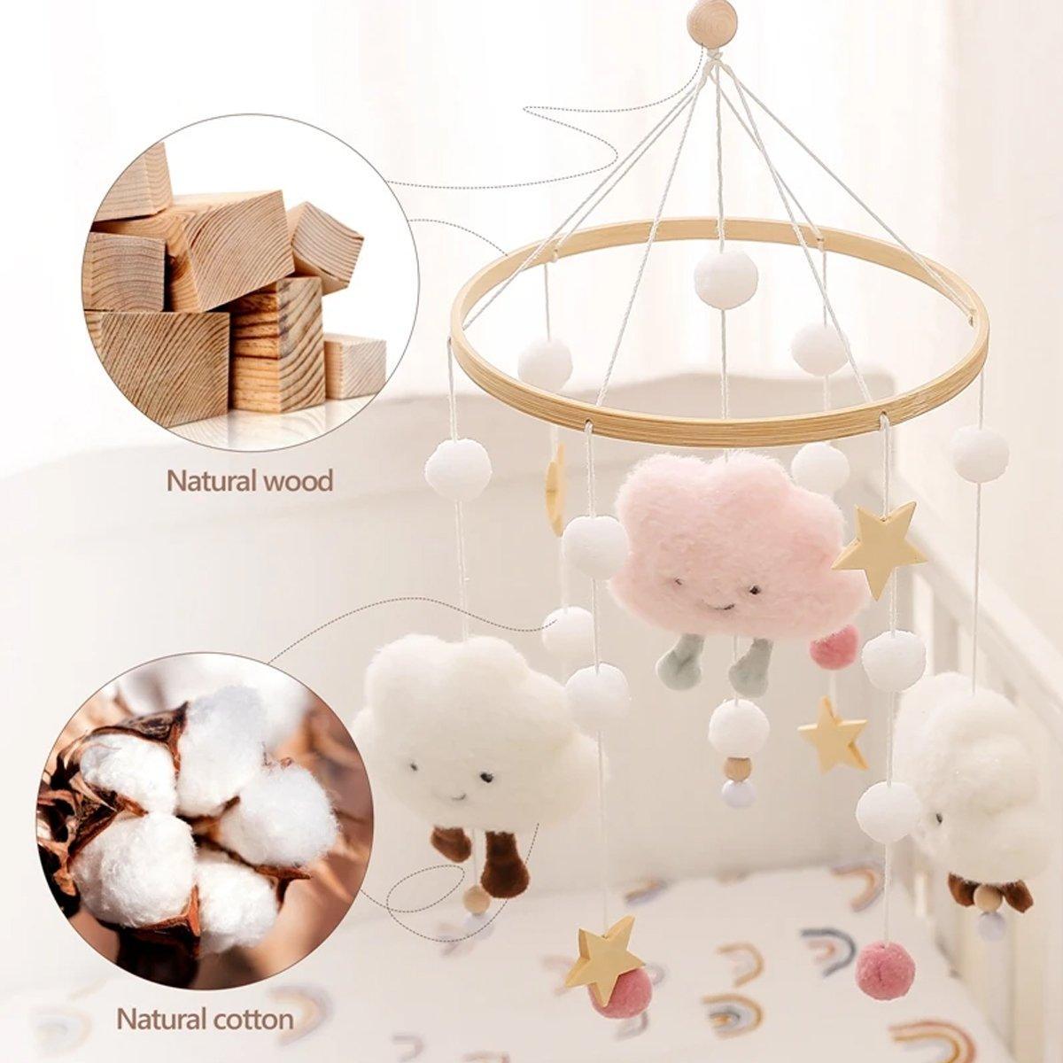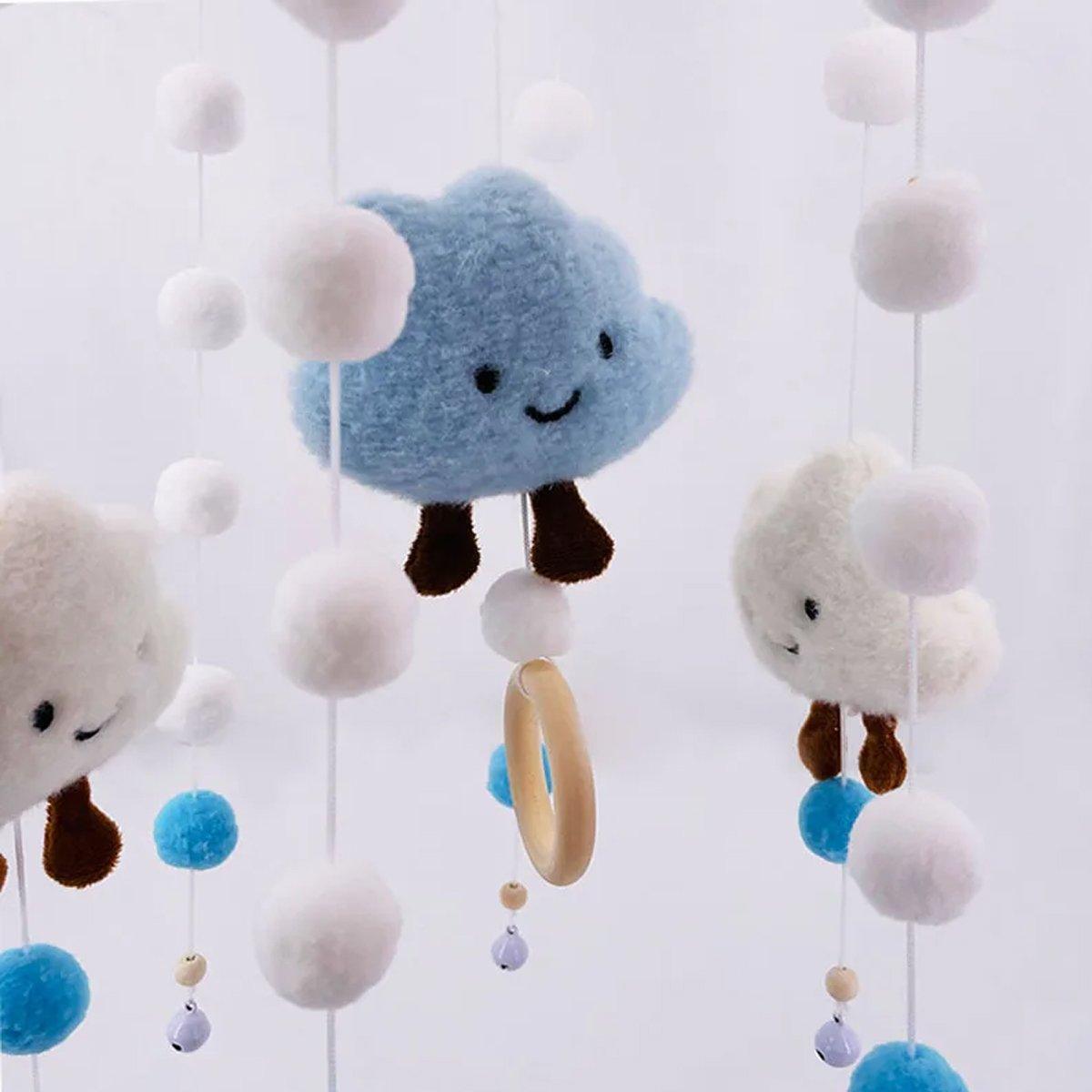 Felt Ball Cloud Mobile Hanging Bed Bell Wind Chime for Nursery or Room Decor
