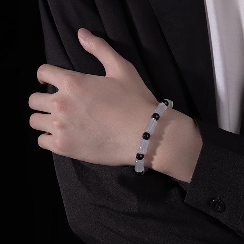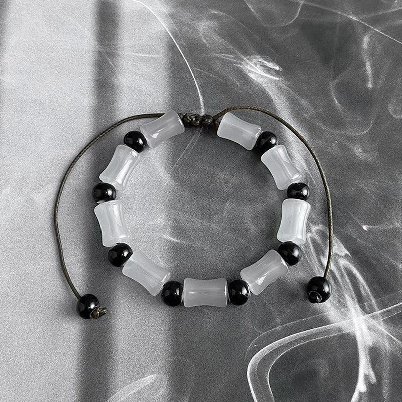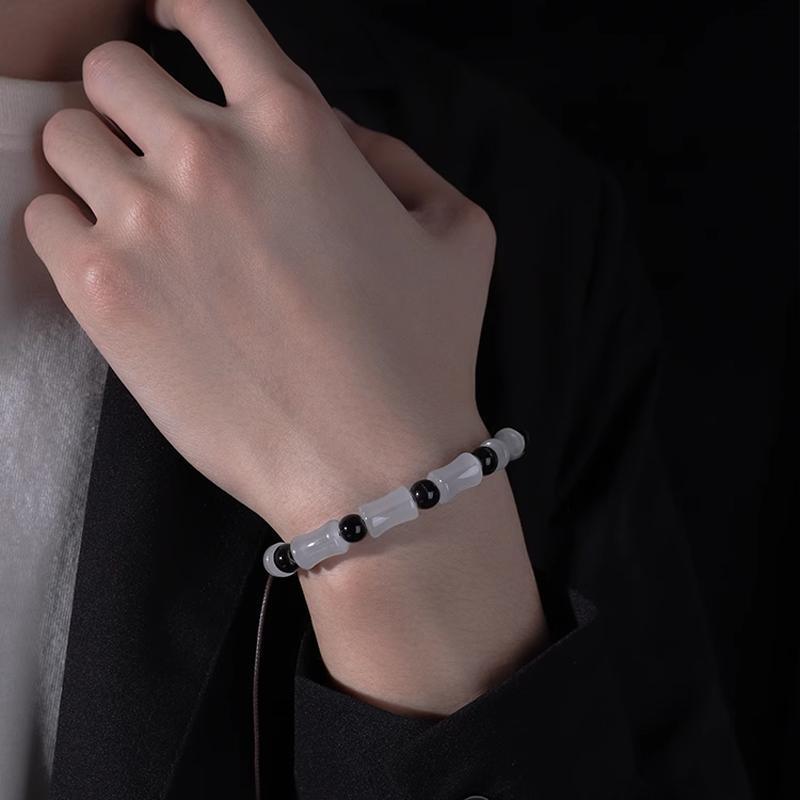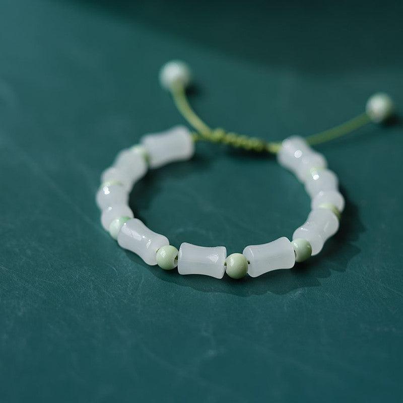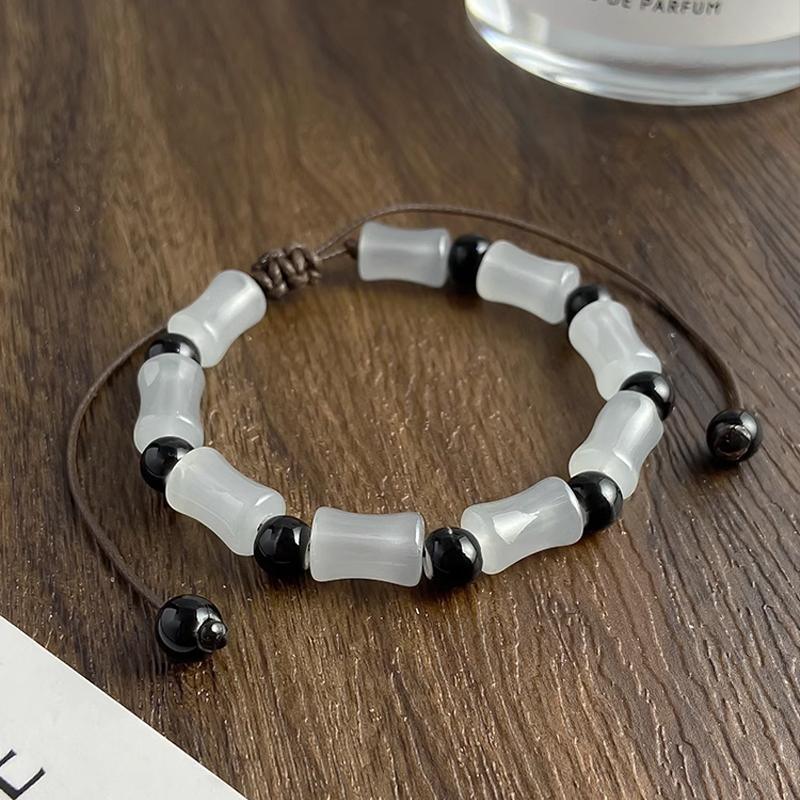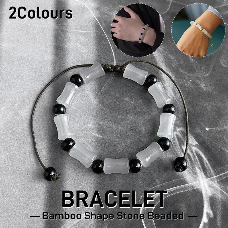 Bamboo Shape Stone Beaded Bracelet Adjustable Hand Rope Natural Stone Fashion