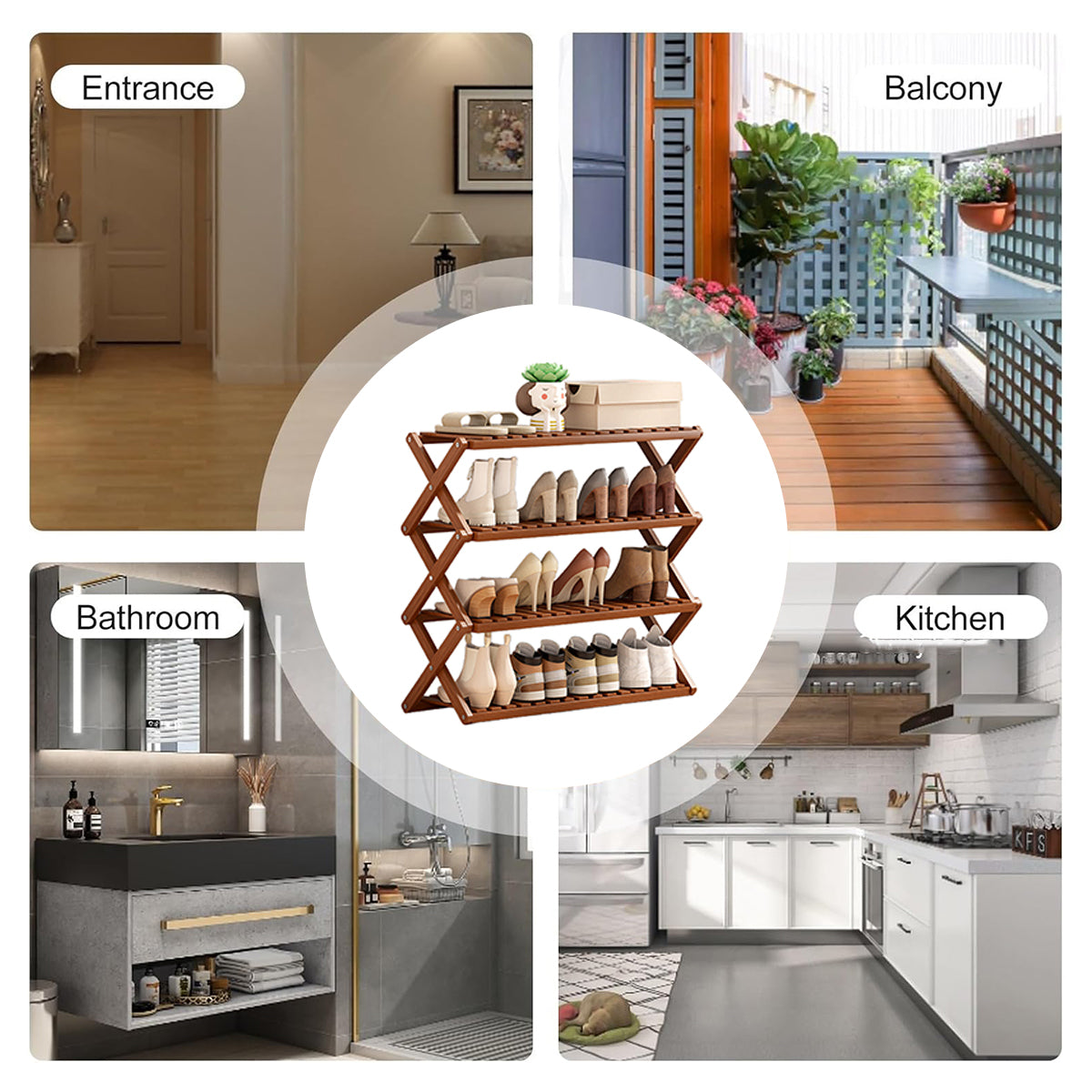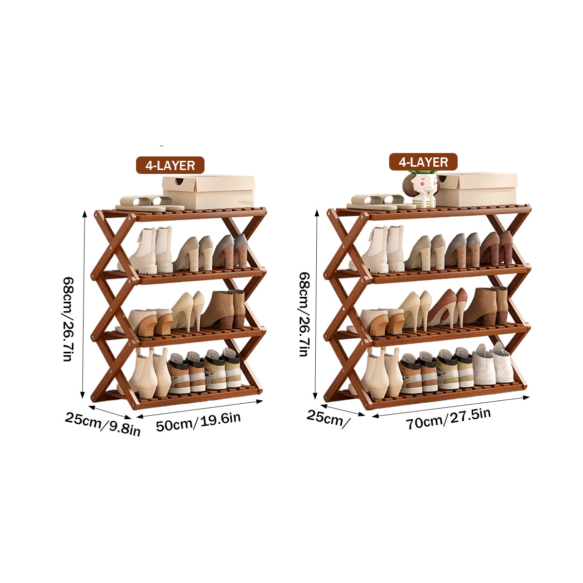 Bamboo Shoe Rack Multi-Layer Foldable Non Slip Space Saving Storage