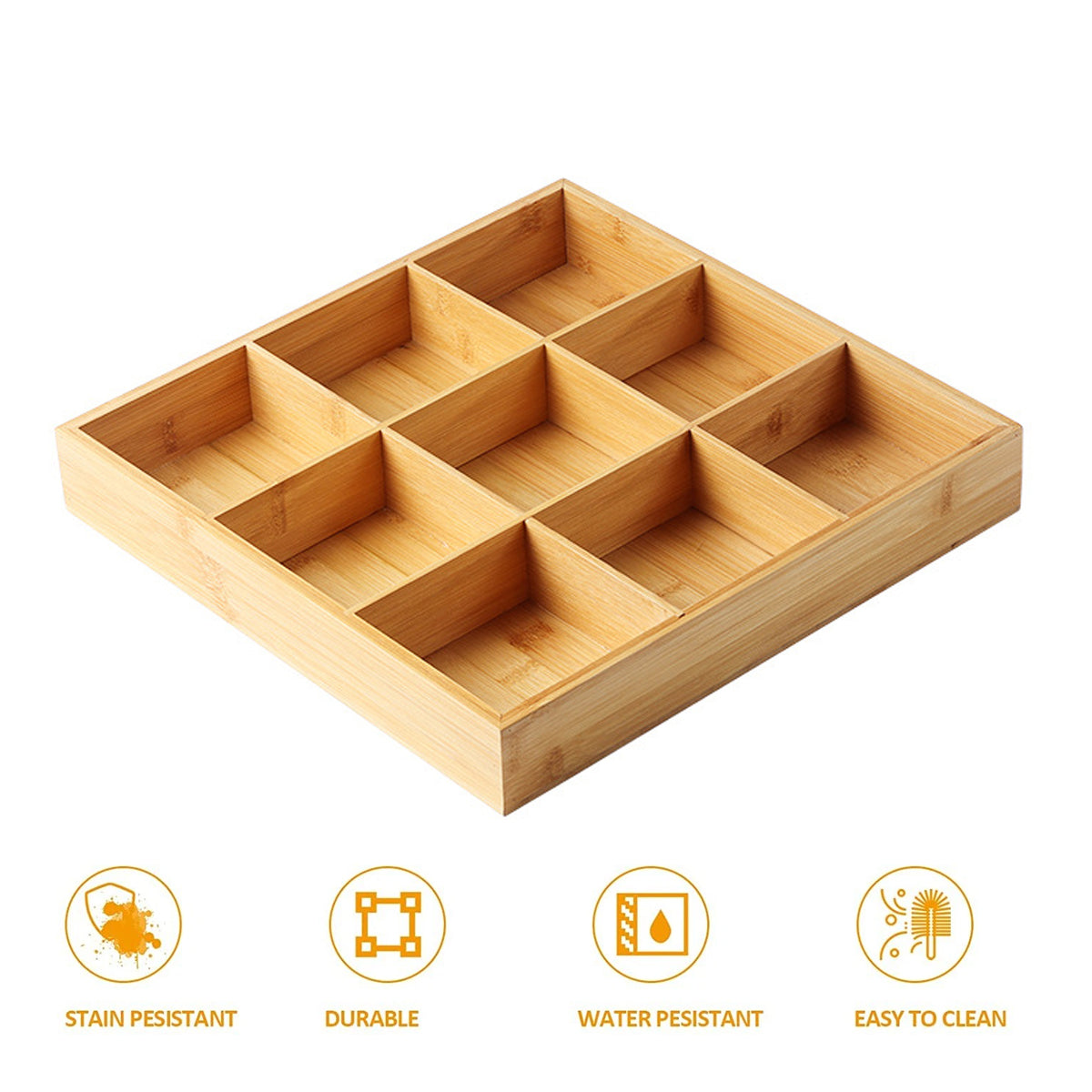 Bamboo Wood 9 Grid Food Plate Serving Tray for Hotel BBQ Hot Pot Home Party