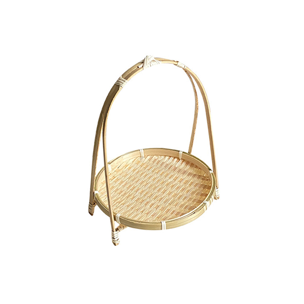 Bamboo Woven Handbasket Round Handle for Snacks Fruits Home Storage Decor