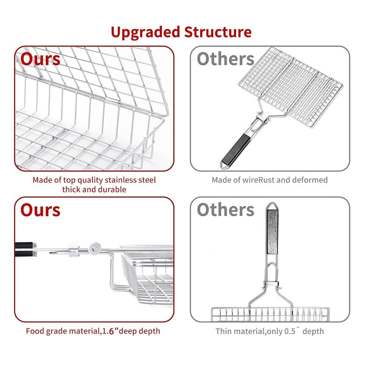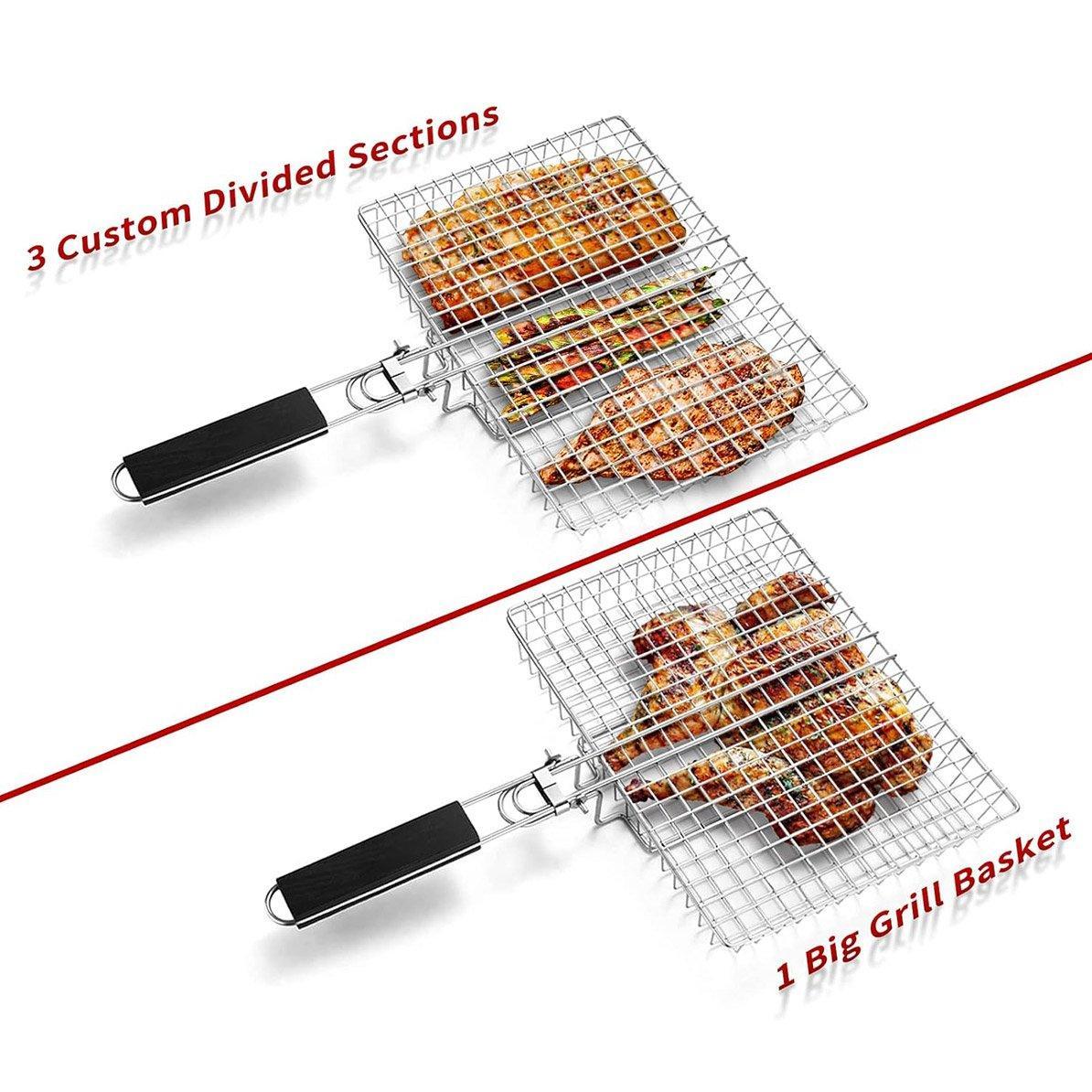 Barbecue Grilling Basket Portable Folding Stainless Steel Grill BBQ Food Holders