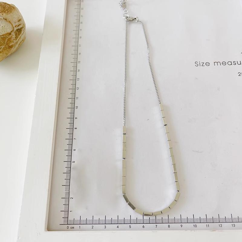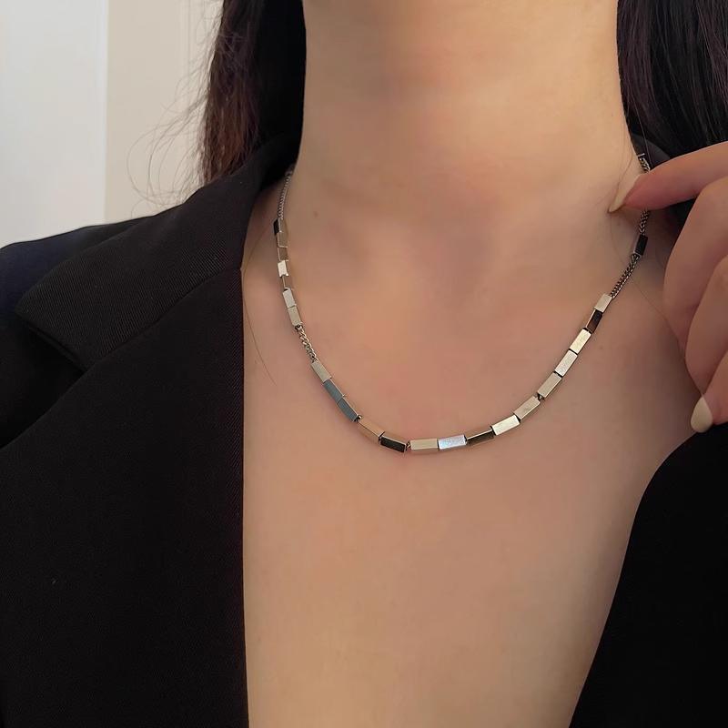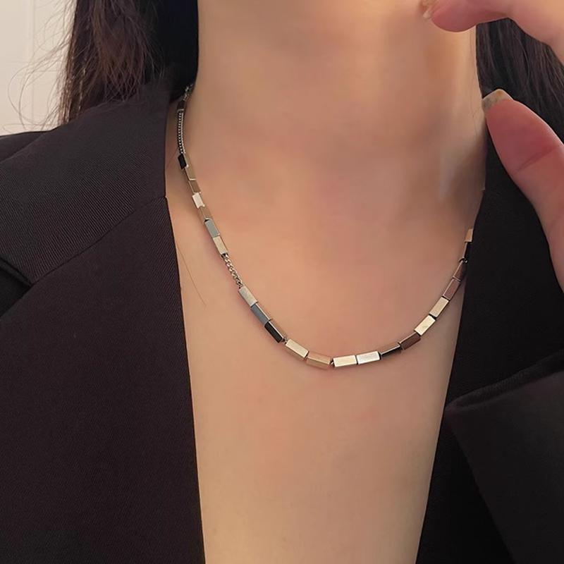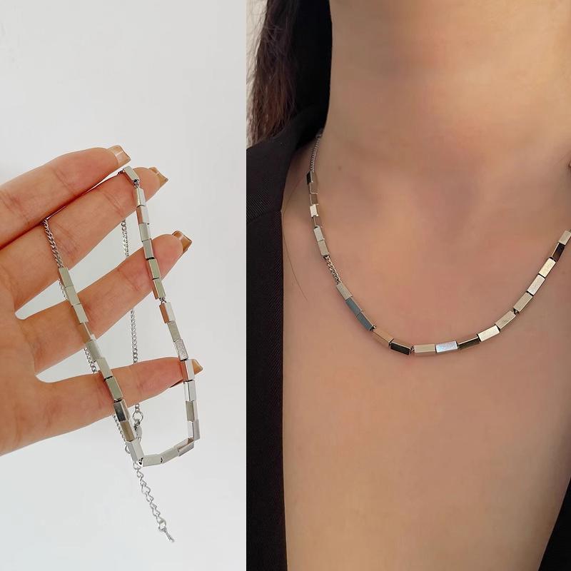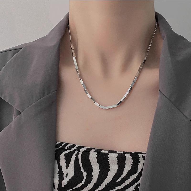 Basic Titanium Steel Silver Slide Block Chain Sparkling Necklace Women Jewelry