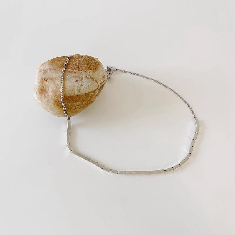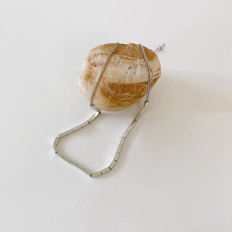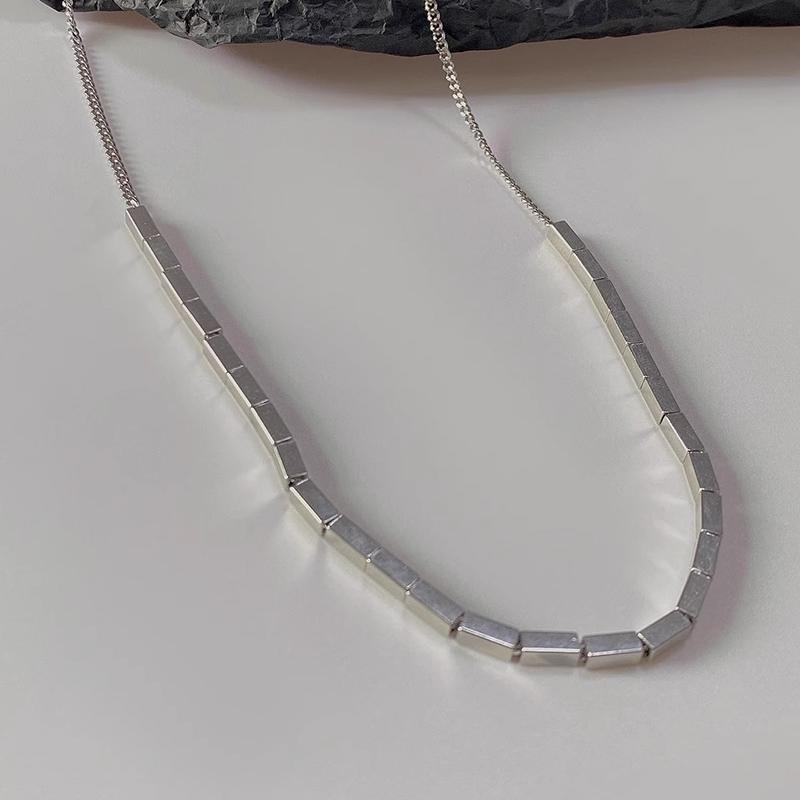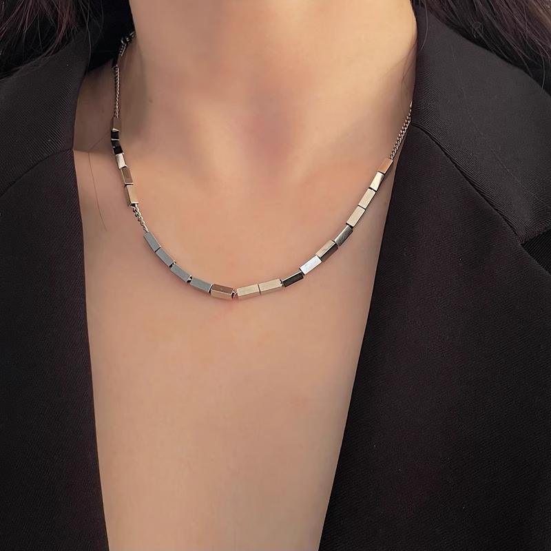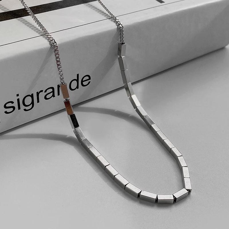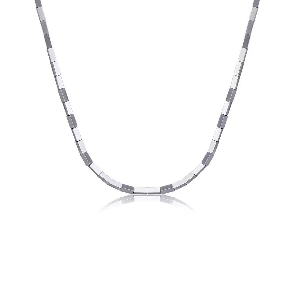 Basic Titanium Steel Silver Slide Block Chain Sparkling Necklace Women Jewelry