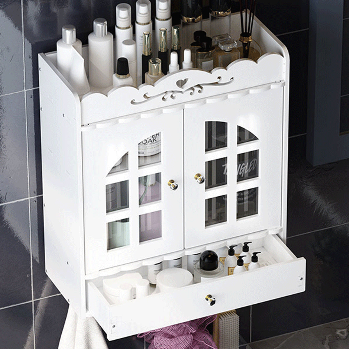 Bathroom Wall-Mounted Storage Cabinet with No-Drill Transparent Doors