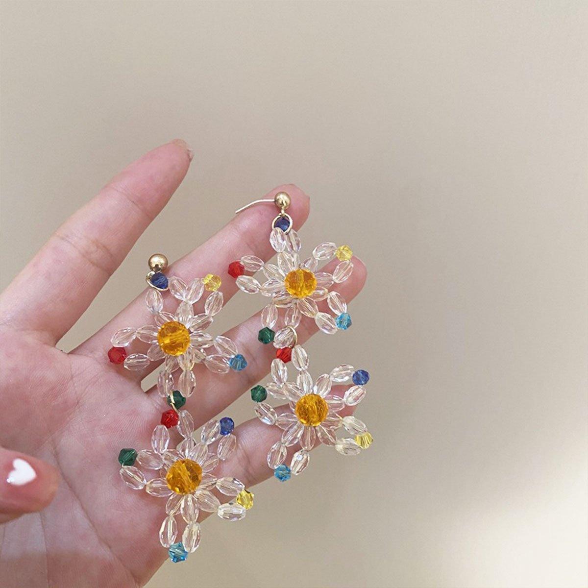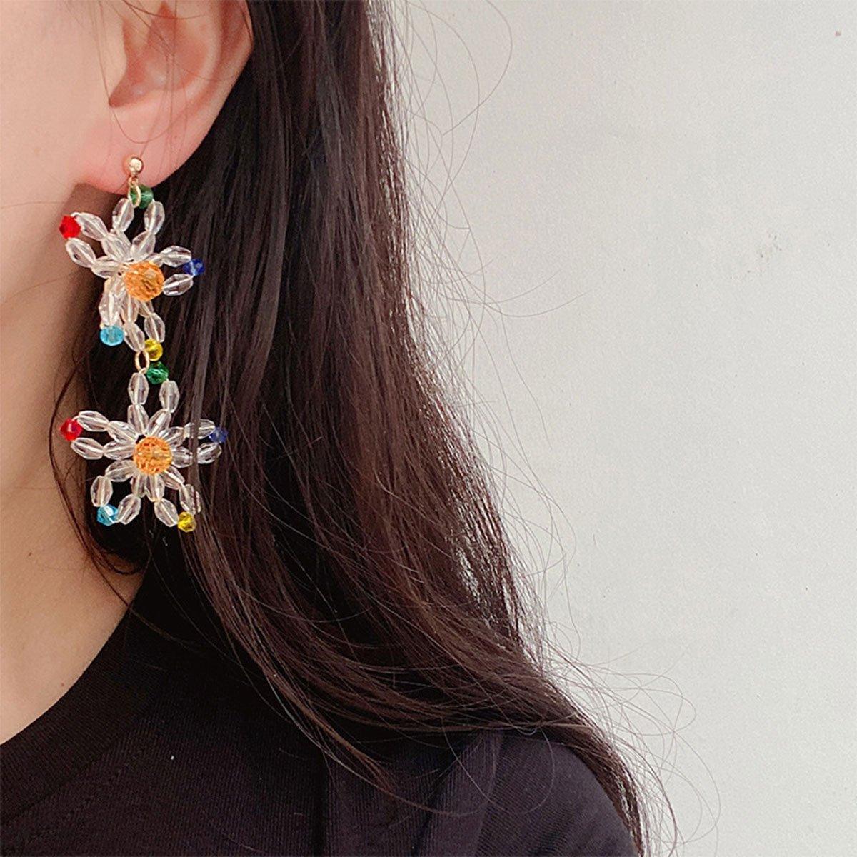 Beaded Flower Long Fringe Earrings Fashion Stud Jewellery for Women Gifts