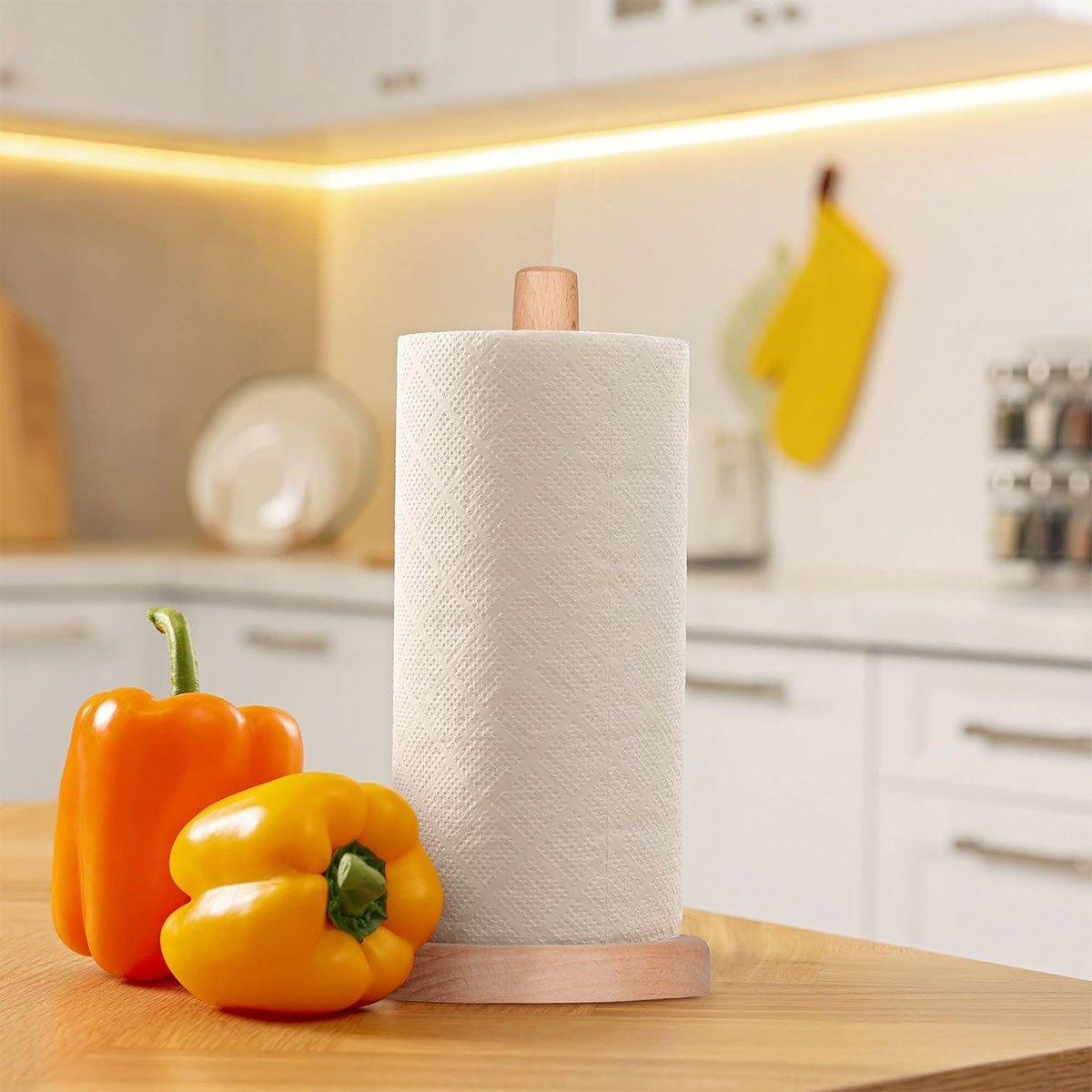 Beech Wood Vertical Paper Roll Holder Creative Kitchen Tissue Rack Storage Stand