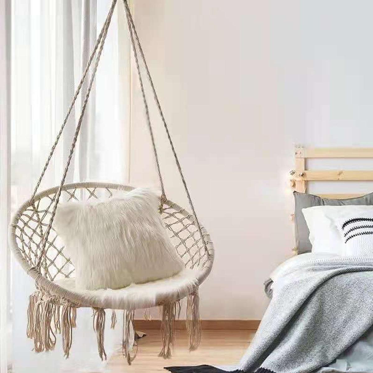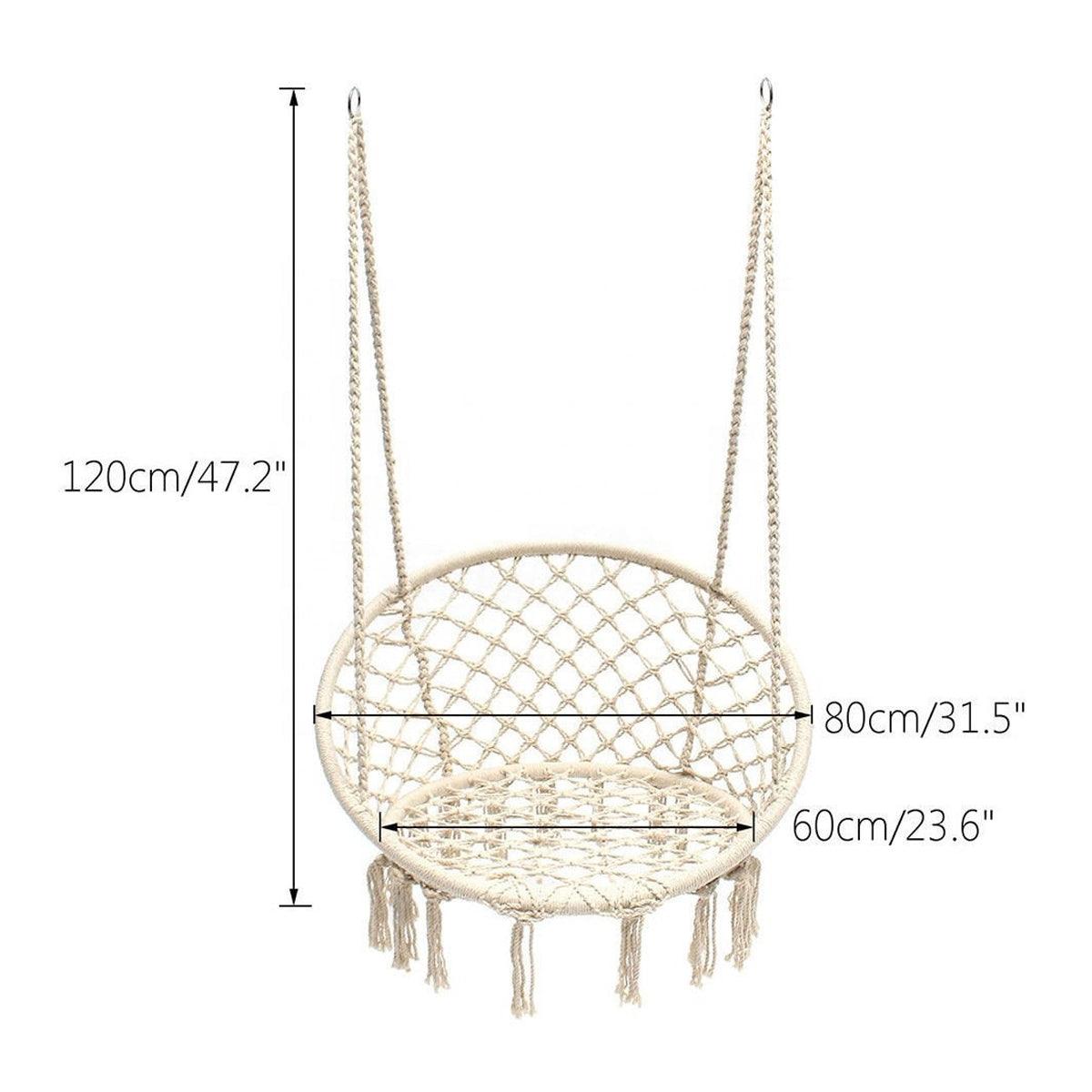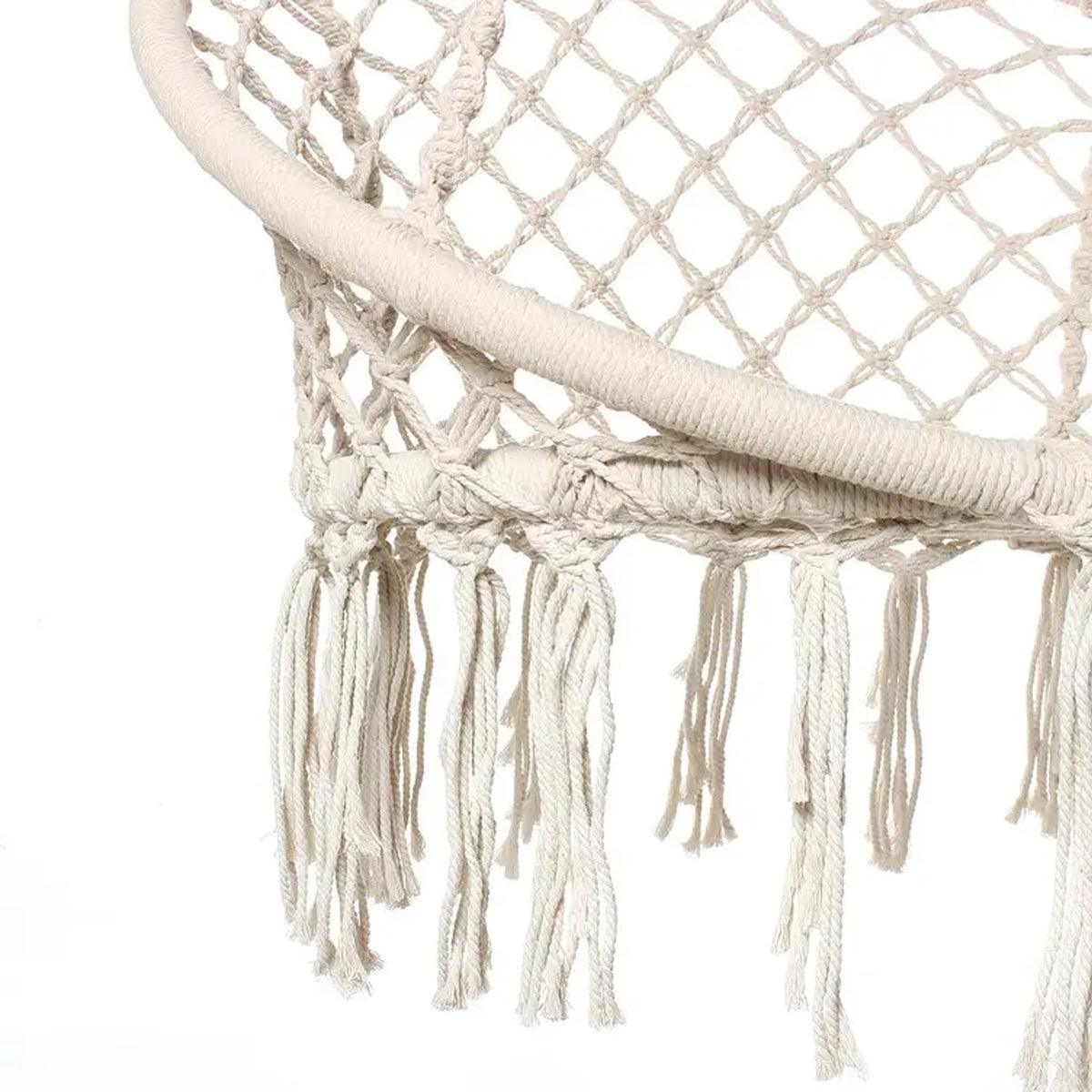 Beige Hammock Swing Chair Cotton Macrame Hanging Rope Seat Indoor Outdoor Patio