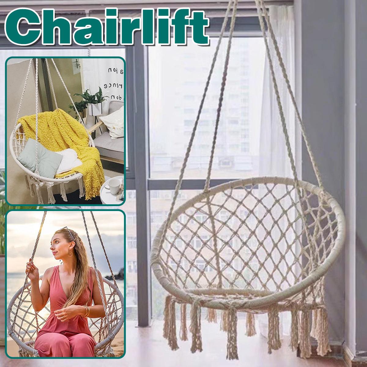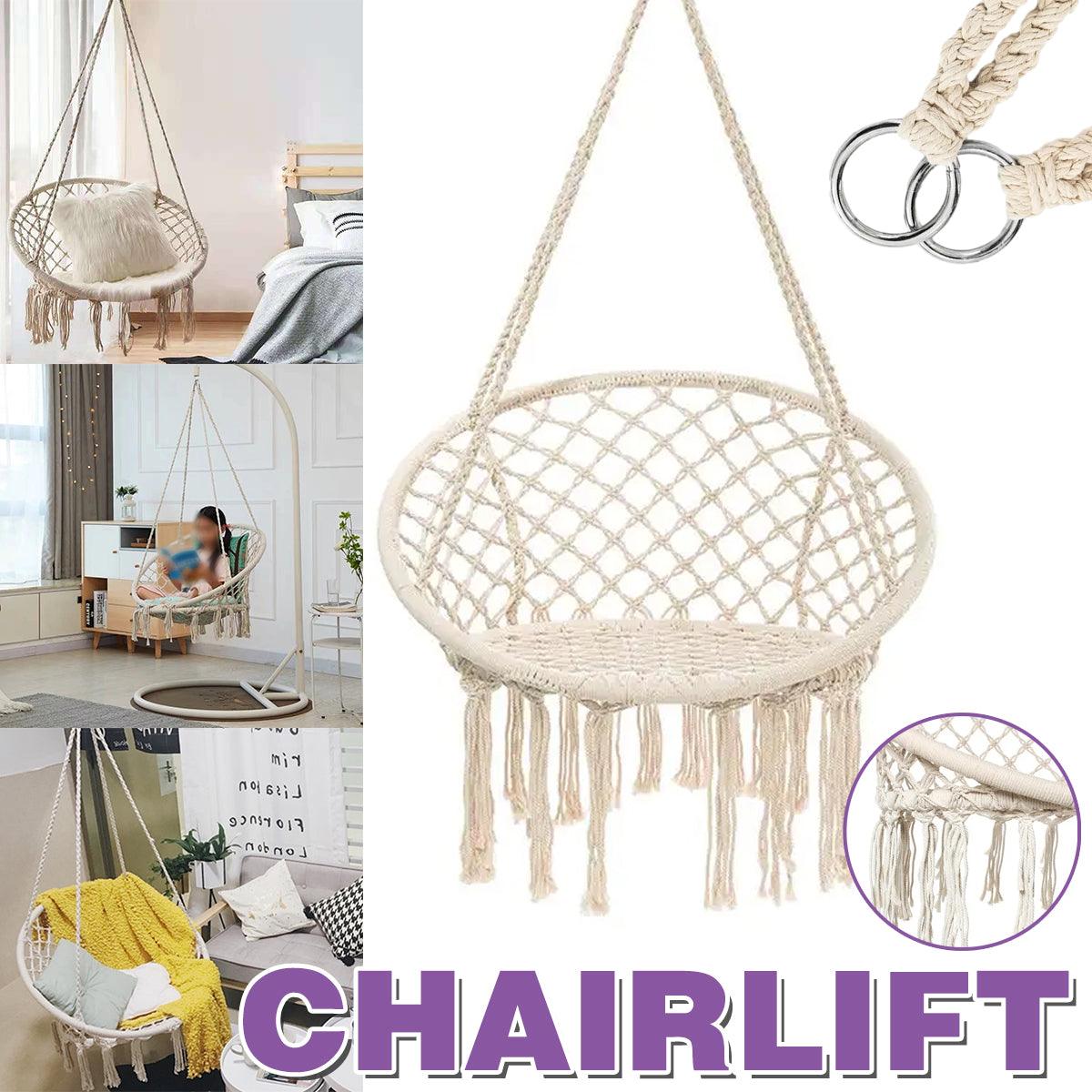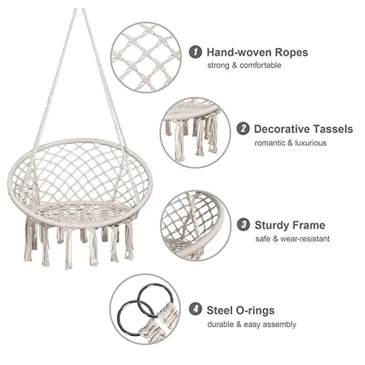 Beige Hammock Swing Chair Cotton Macrame Hanging Rope Seat Indoor Outdoor Patio