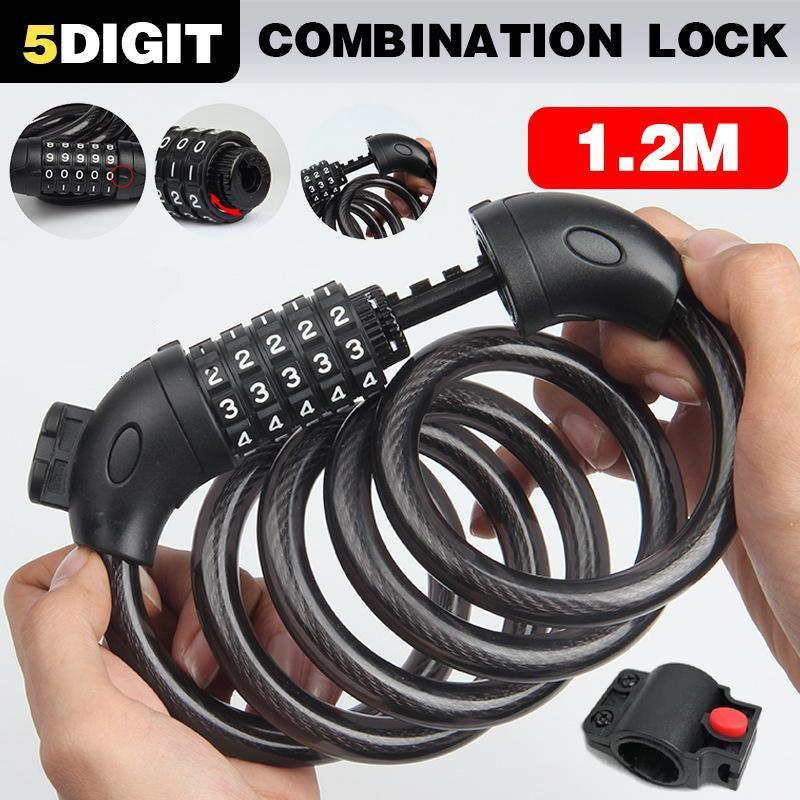 Bike Bicycle Cycling Lock 5-Digit Combination Security Cable Lock 12*1200mm