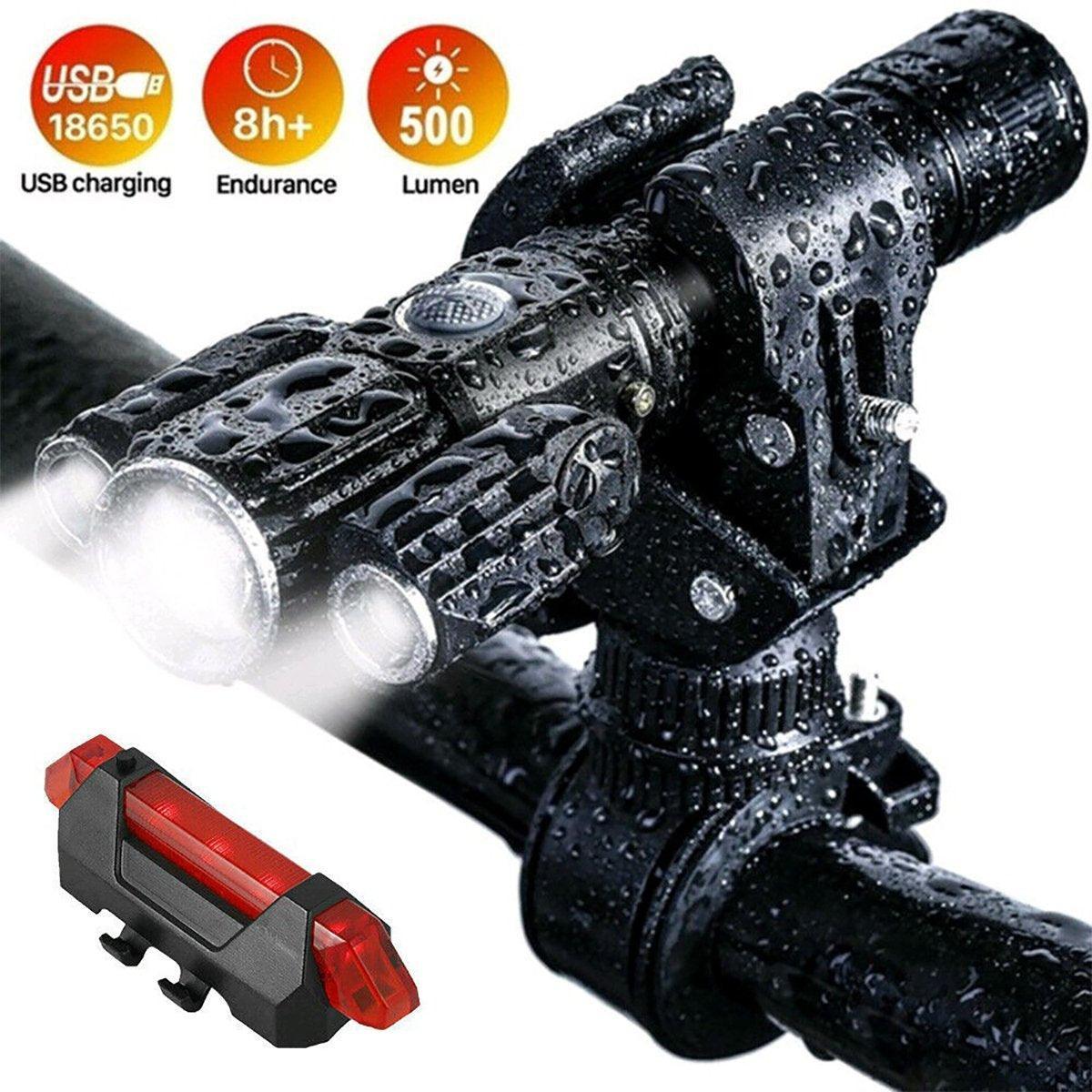 1pc Bike Front Rear LED Lights Set Mountain Bicycle USB Rechargeable Torch Lamp No Battery
