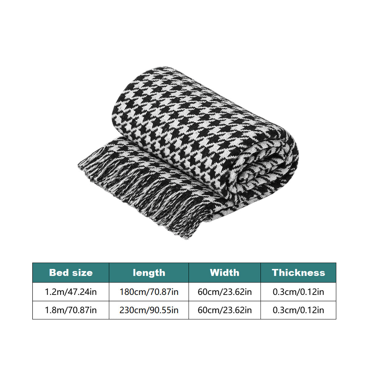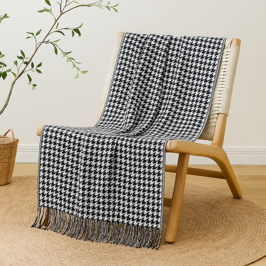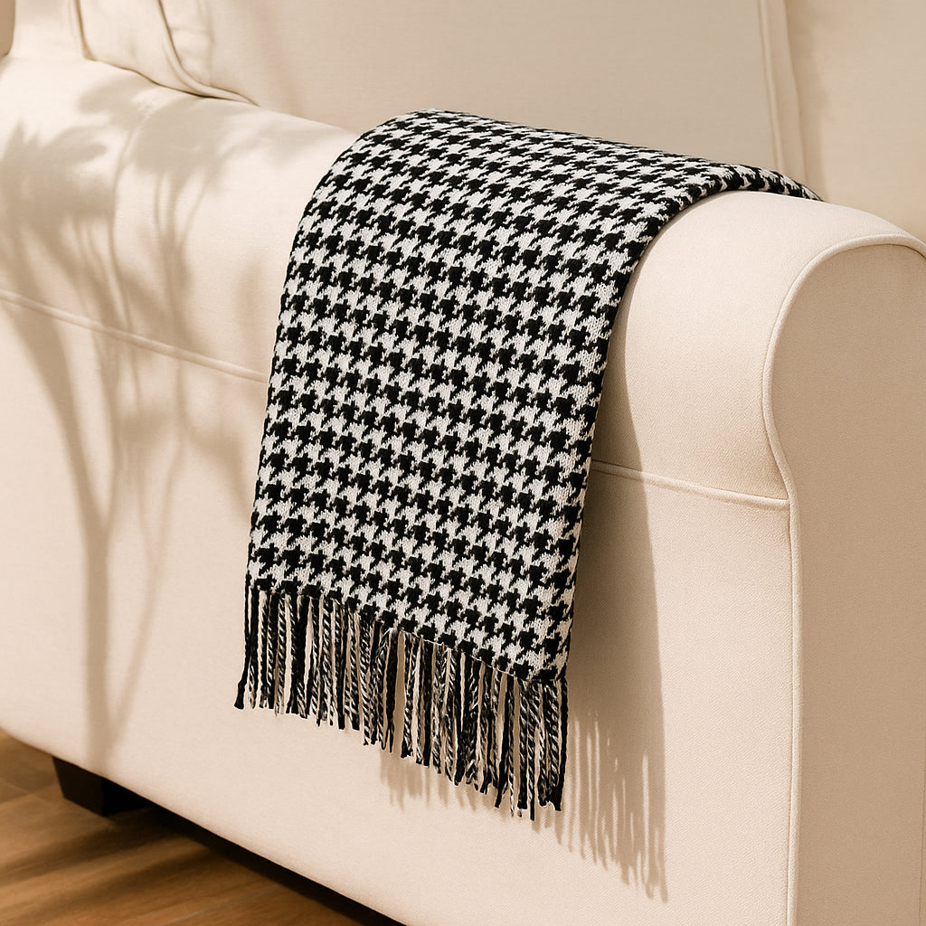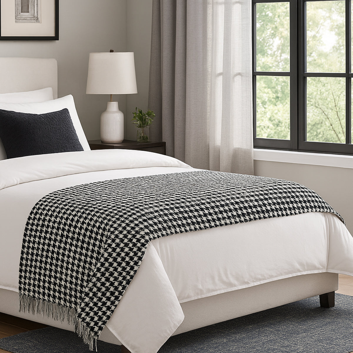 Black and White Houndstooth Bed Runner Decorative Throw for Hotel or Home Bedding