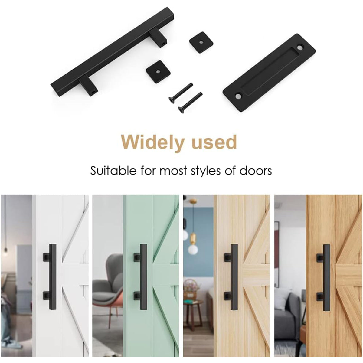 Black Carbon Steel Door Handle Easy to Install Durable Sturdy for Home Barn Door