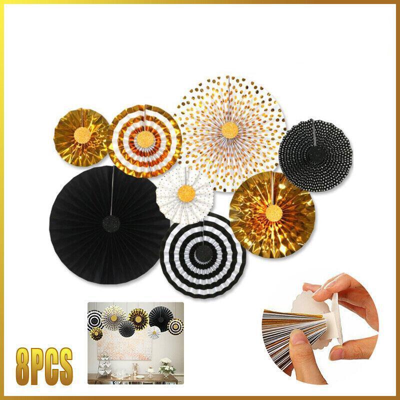 Black Gold Paper Fans Hanging Party Decorations Supplies Bridal Shower Birthday
