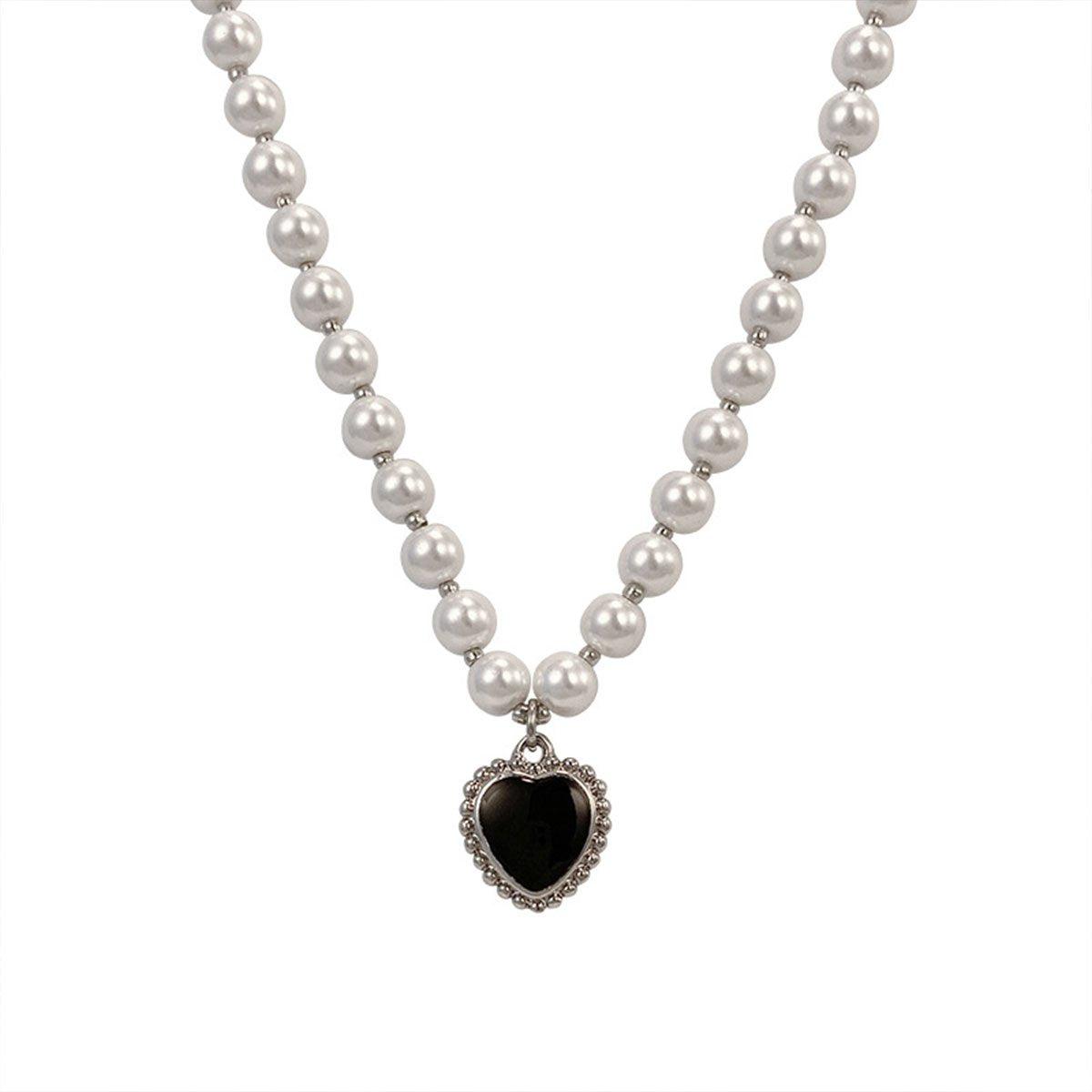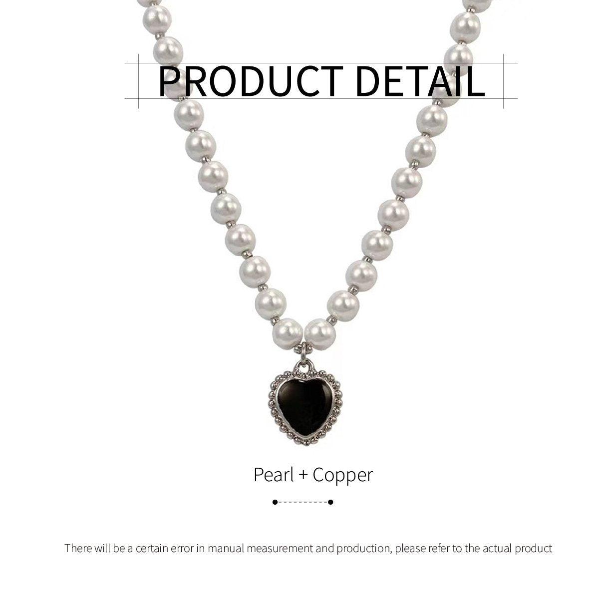 Black Heart Pearl Vintage Necklace Elegant Jewelry for Women Fashion Gift
