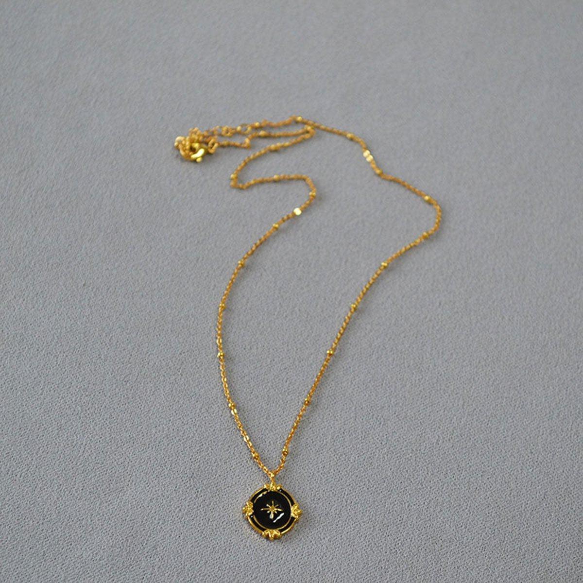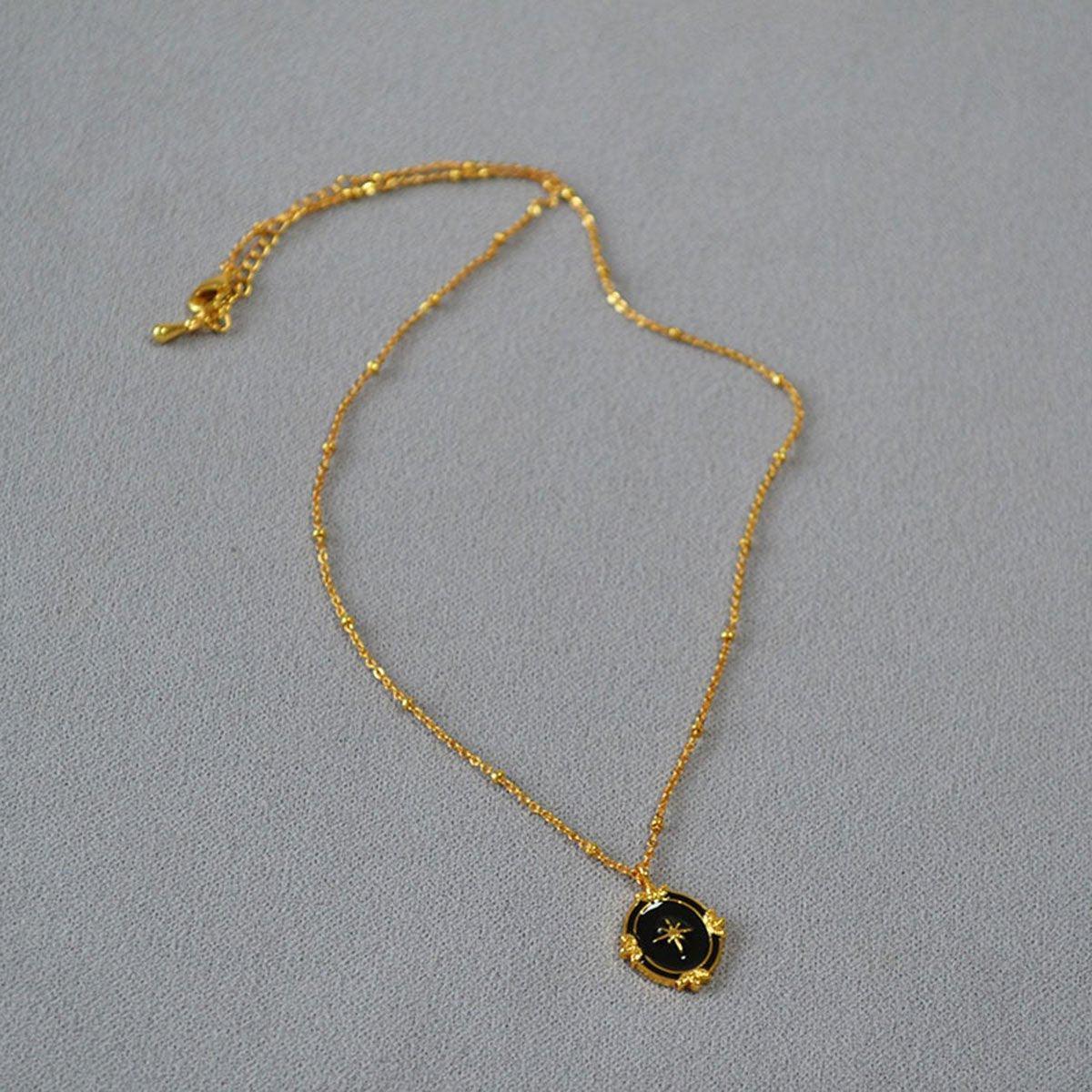 Black Polaris Oval Pendant Necklace Simple Court Style Fashion Jewelry Women
