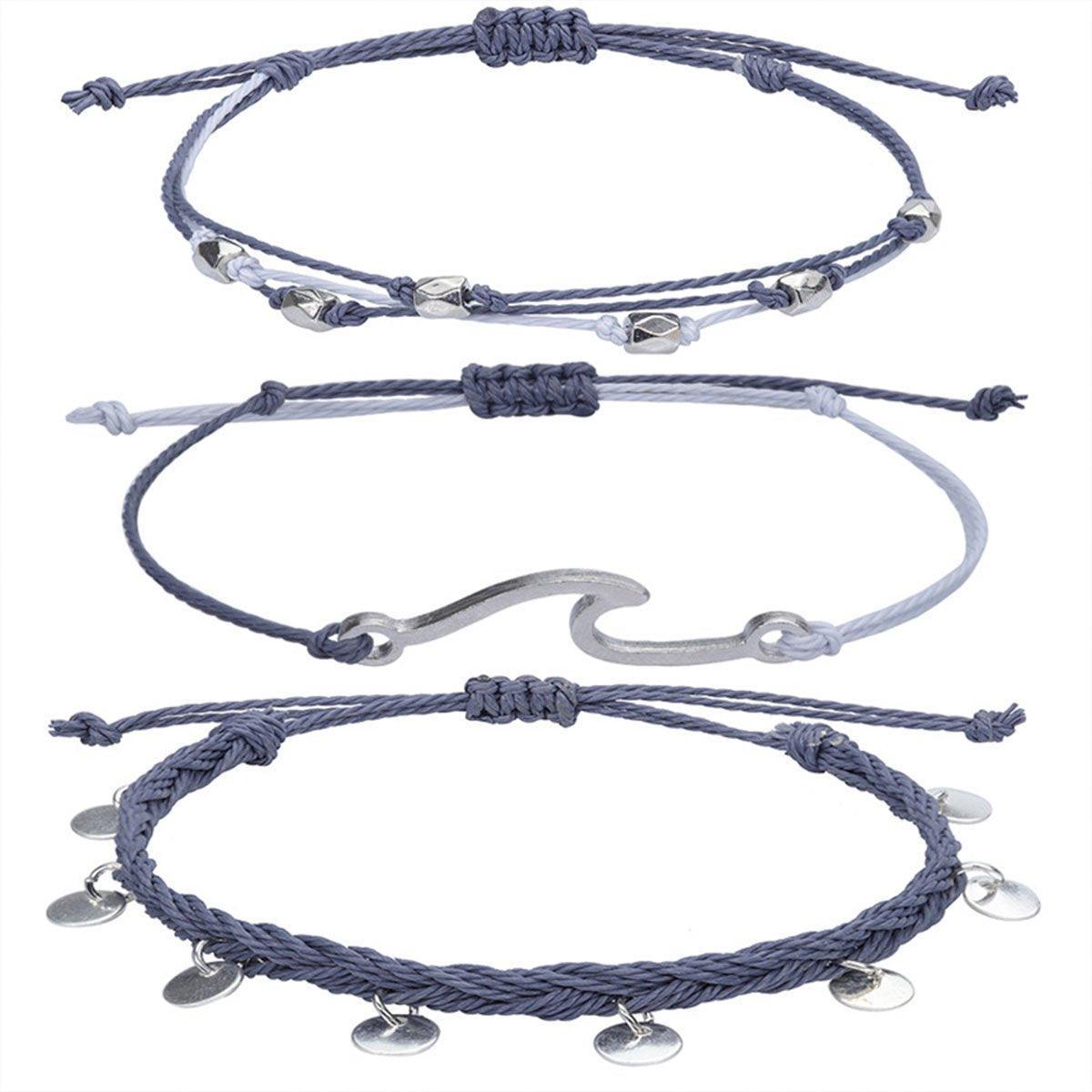 Boho Chic Woven Bracelet Anklet Adjustable Three Piece Beach Ornament