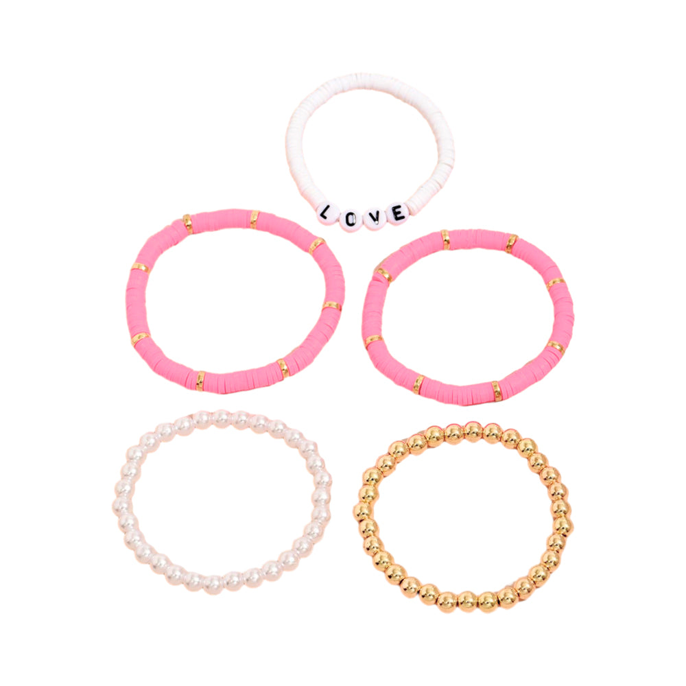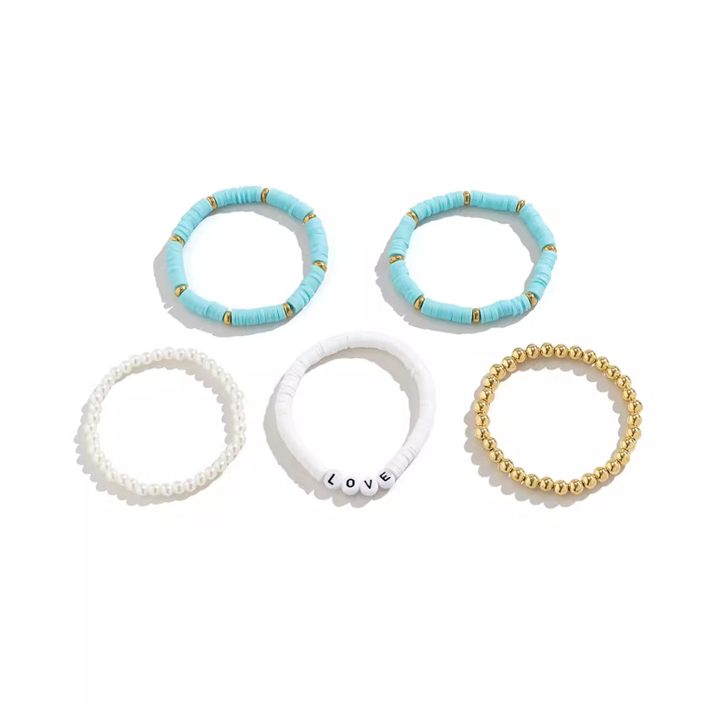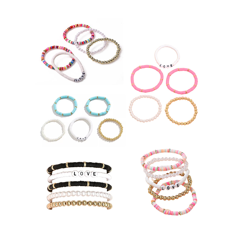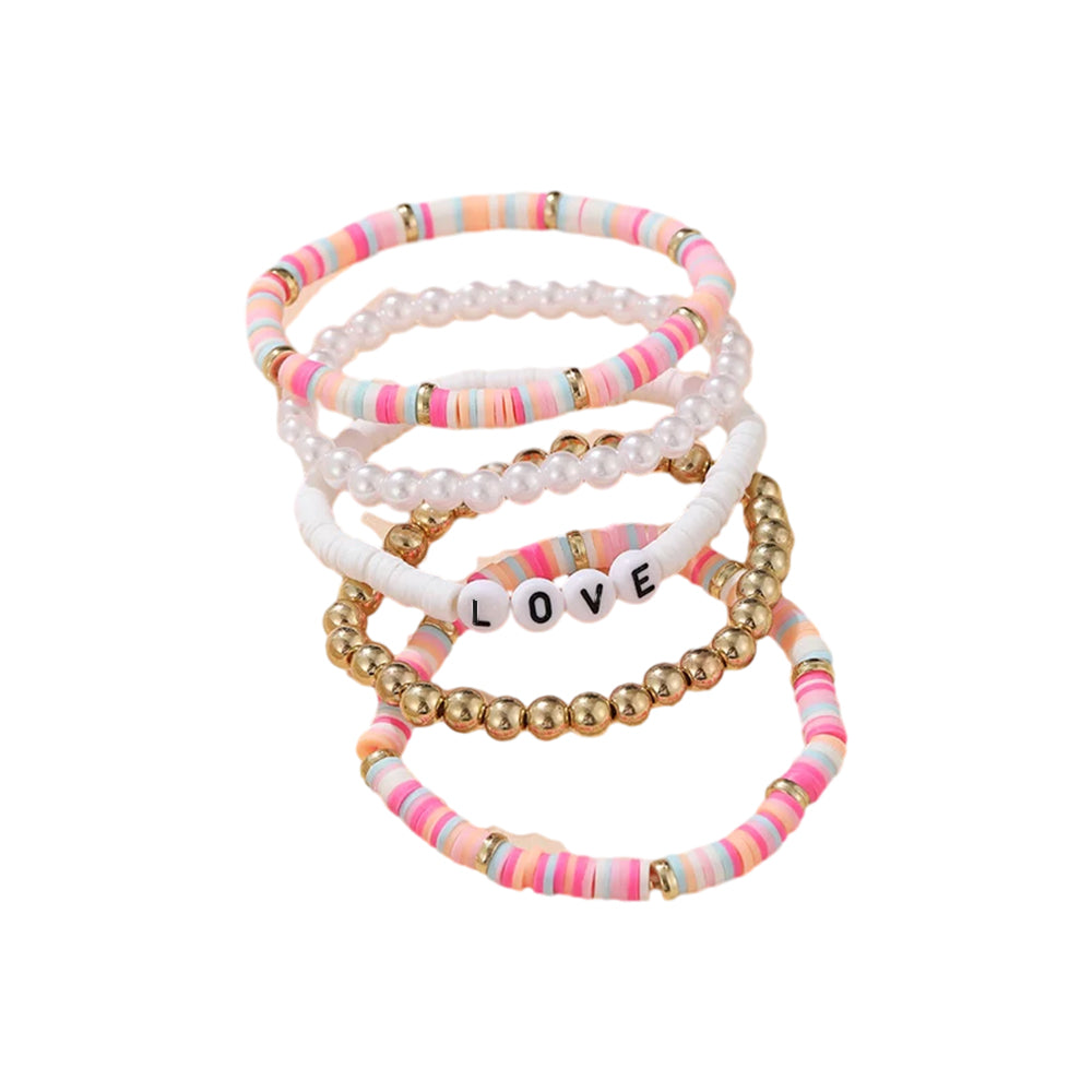 Boho Clay Bead Pearl Bracelet Set Women Stackable 5PCS Love Letter Jewellery