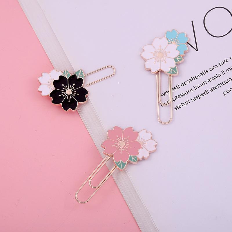 Cherry Blossom Metal Paper Clip Bookmark Sakura Flower Stationery Accessory
