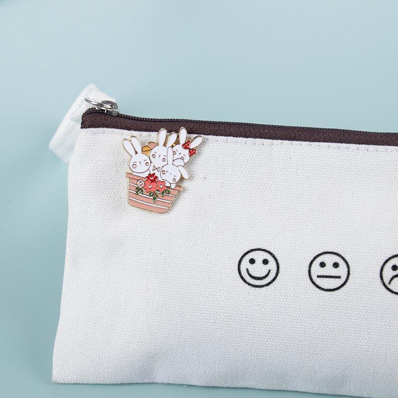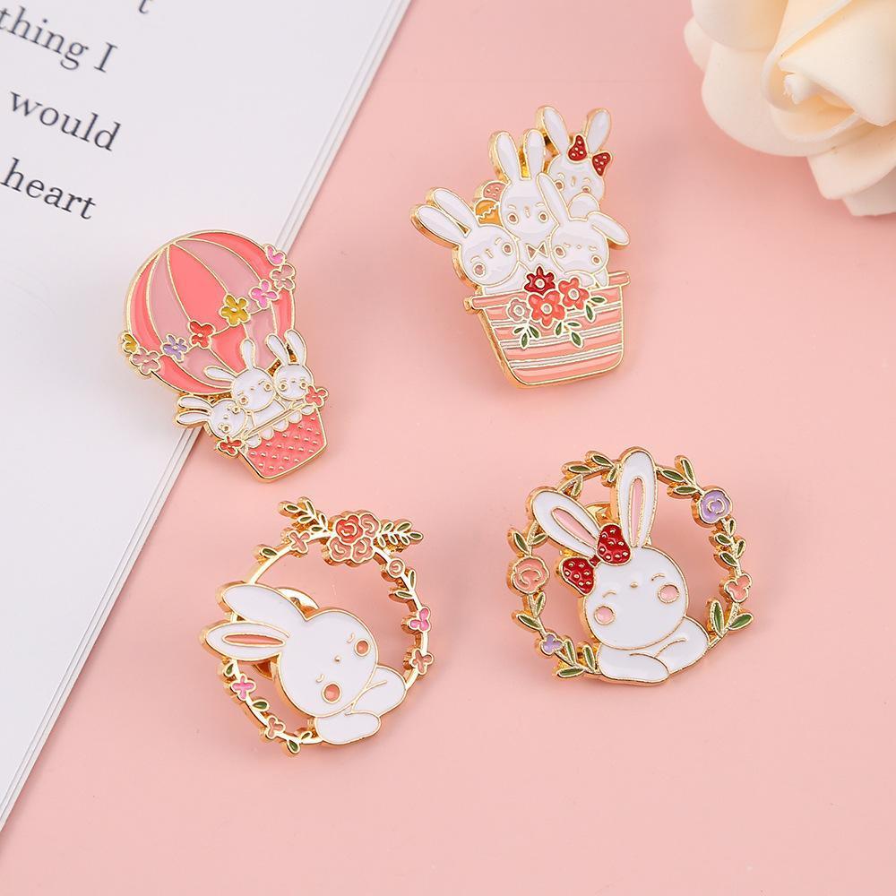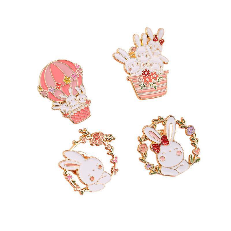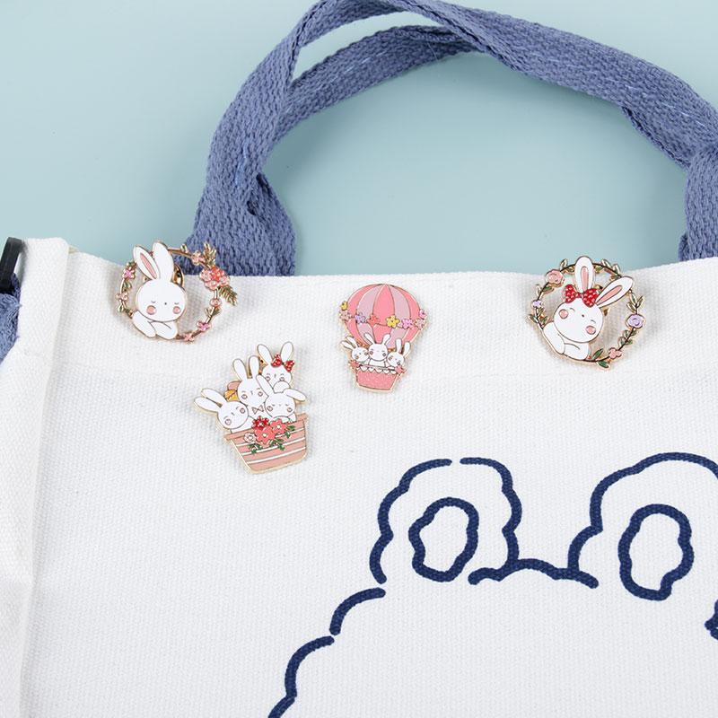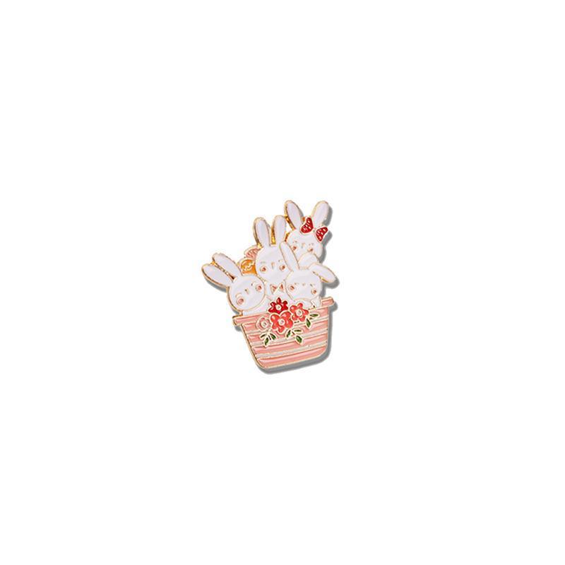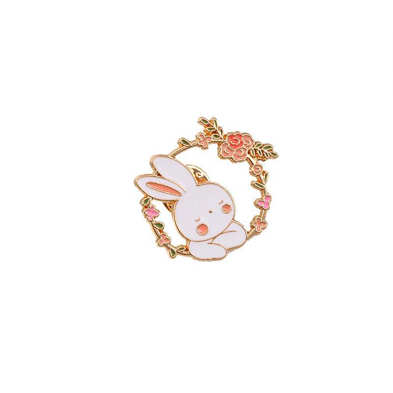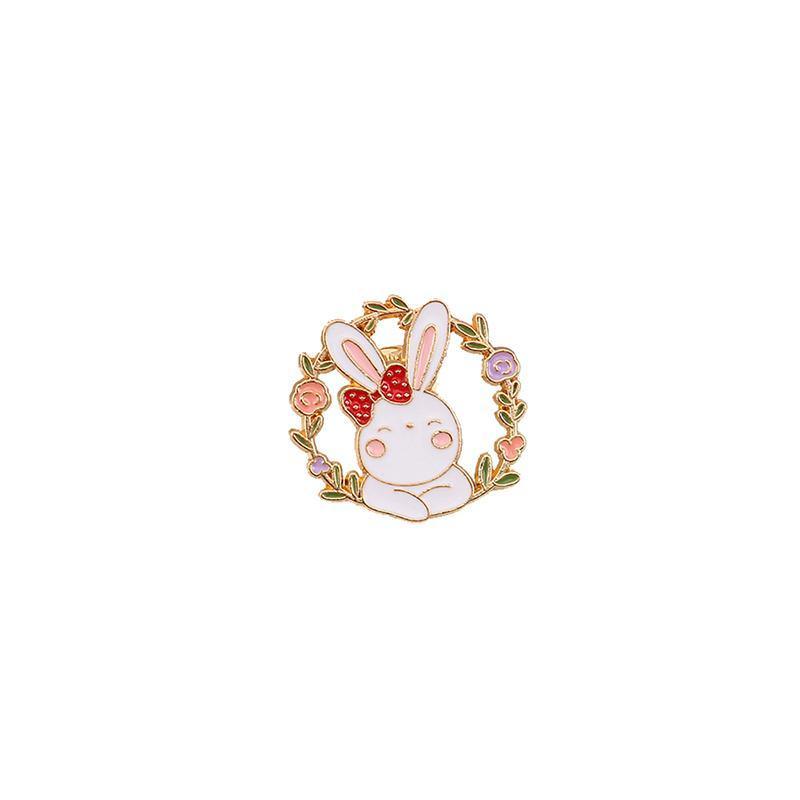 Lovely White Bunny Rabbit Ears Metal Pin Gold Lapel Badge Gift