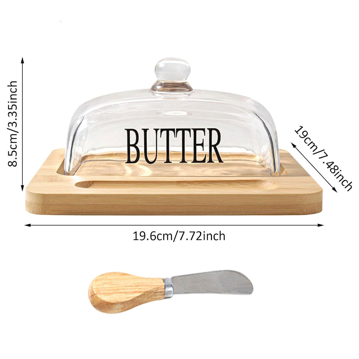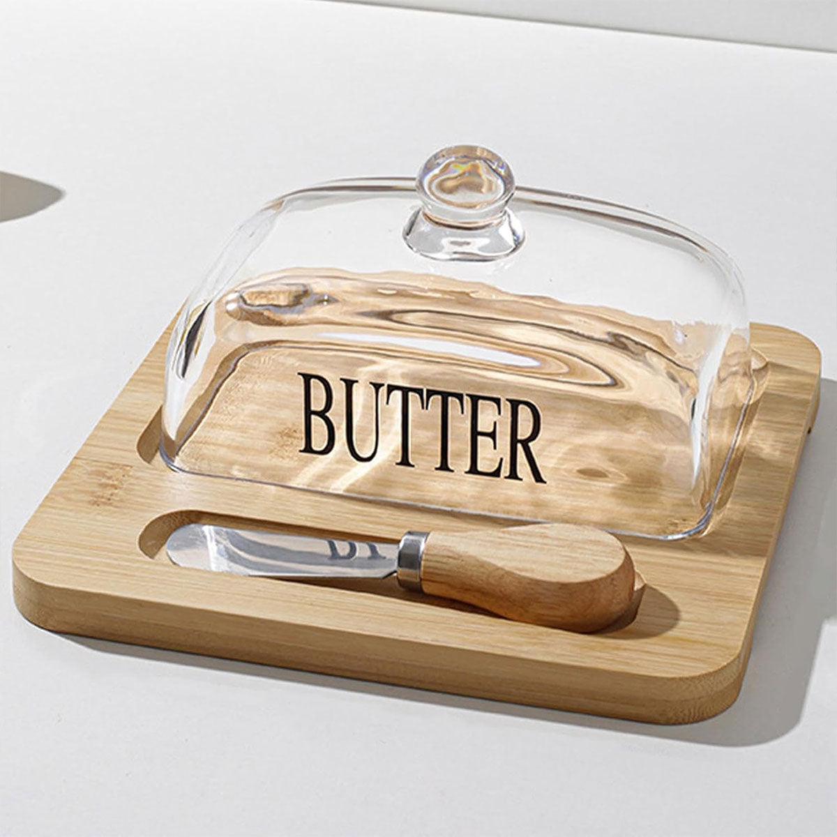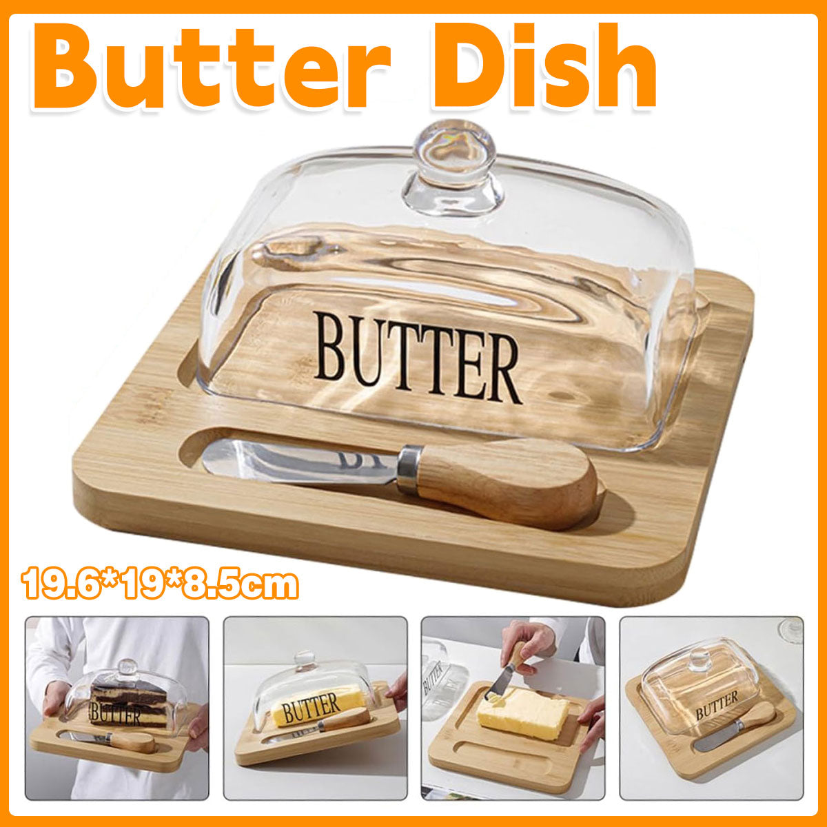 Butter Dish Glass Lid Cheese Cake Dessert Box Storage Container Kitchen Table