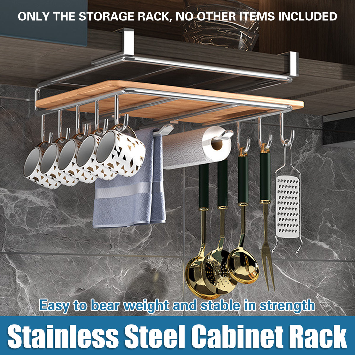 Cabinet Hanging Storage Rack Stainless Steel Silver Kitchen Organiser