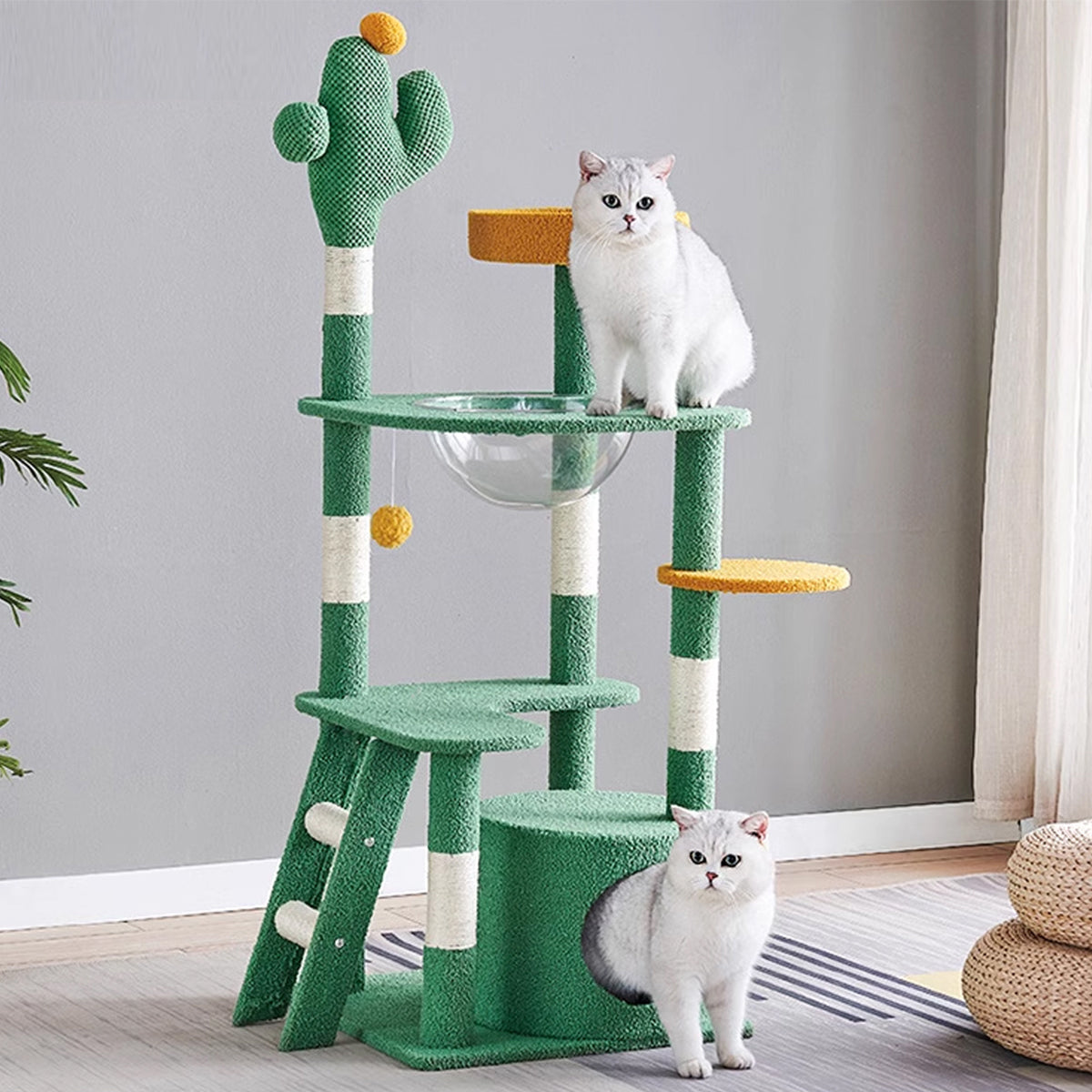 Cactus Shape Cat Tree Climbing Tower Scratching Board Nest for Kitten Play Rest