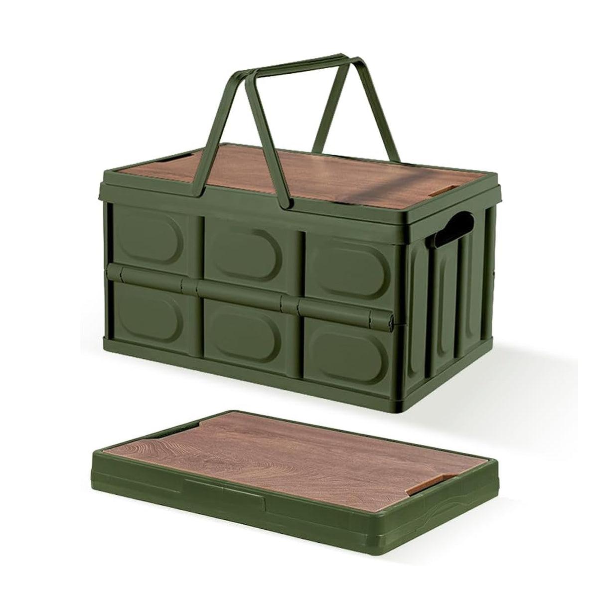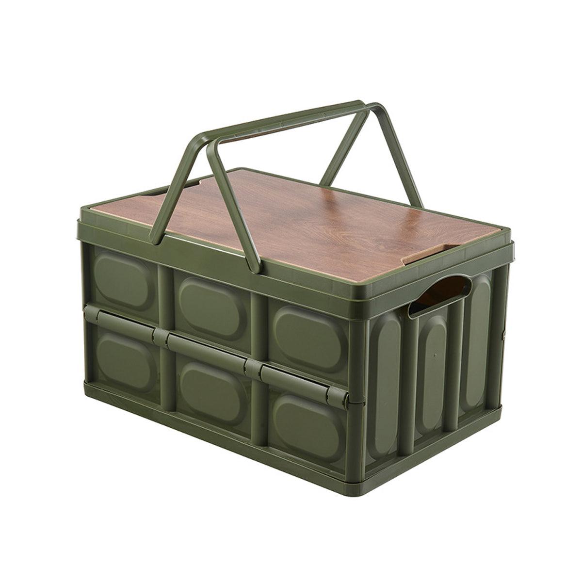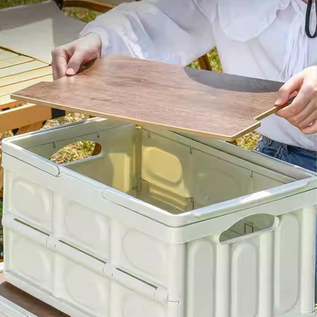 Camping Folding Car Trunk Storage Box Wooden Lid Outdoor Fishing Organizer Box