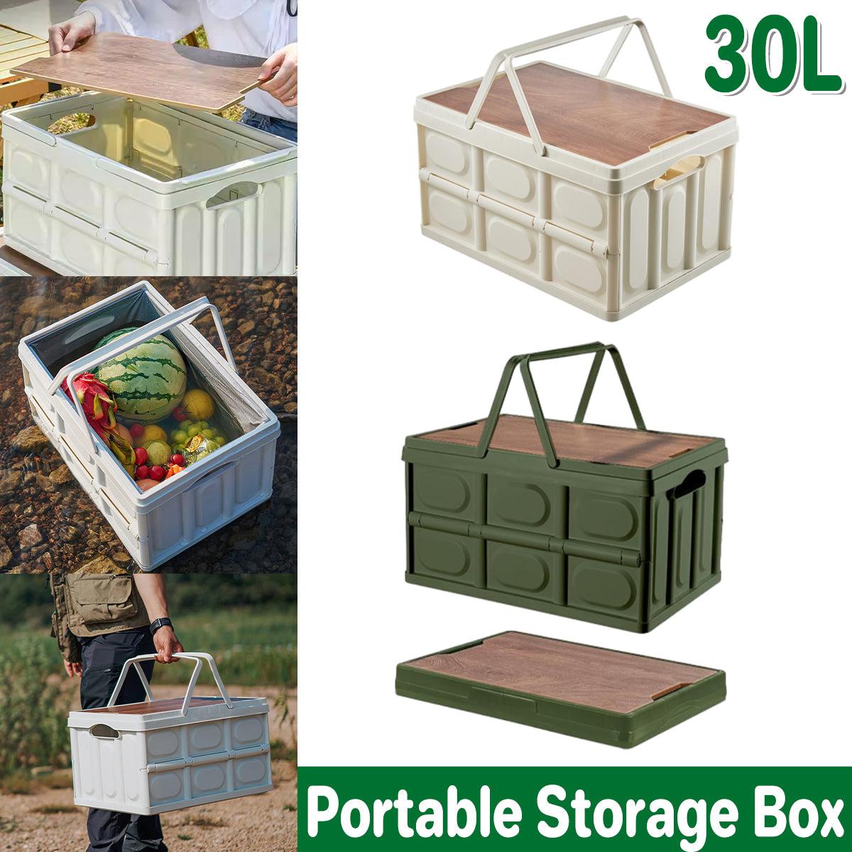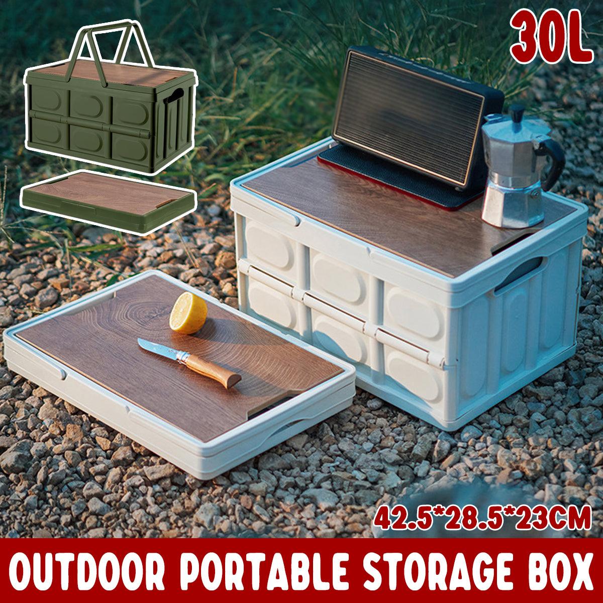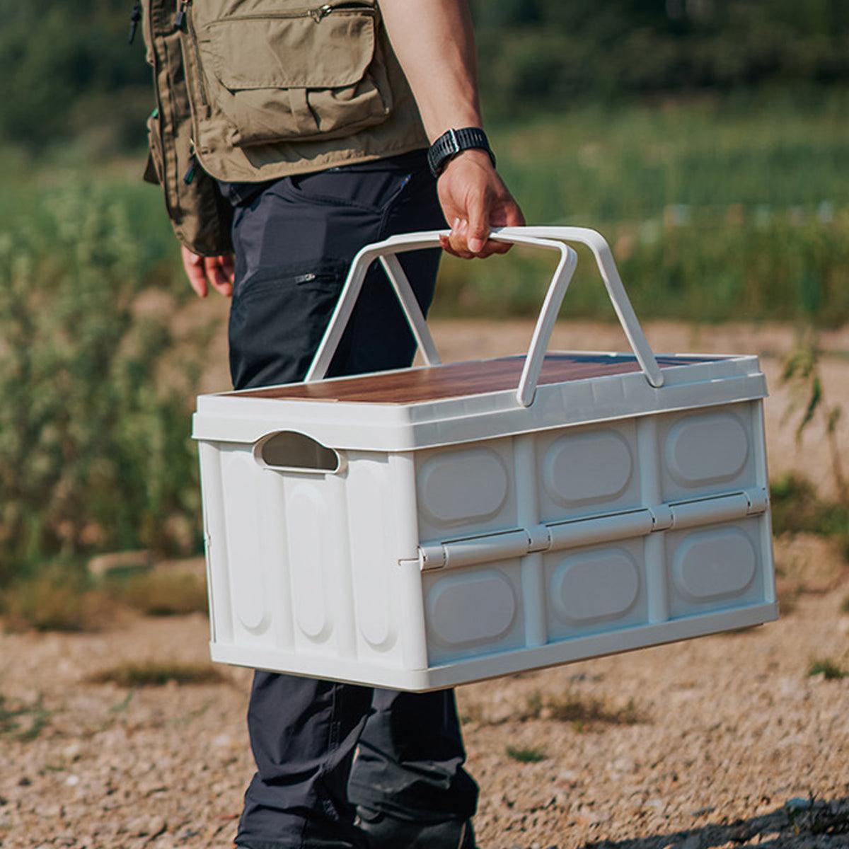Camping Folding Car Trunk Storage Box Wooden Lid Outdoor Fishing Organizer Box