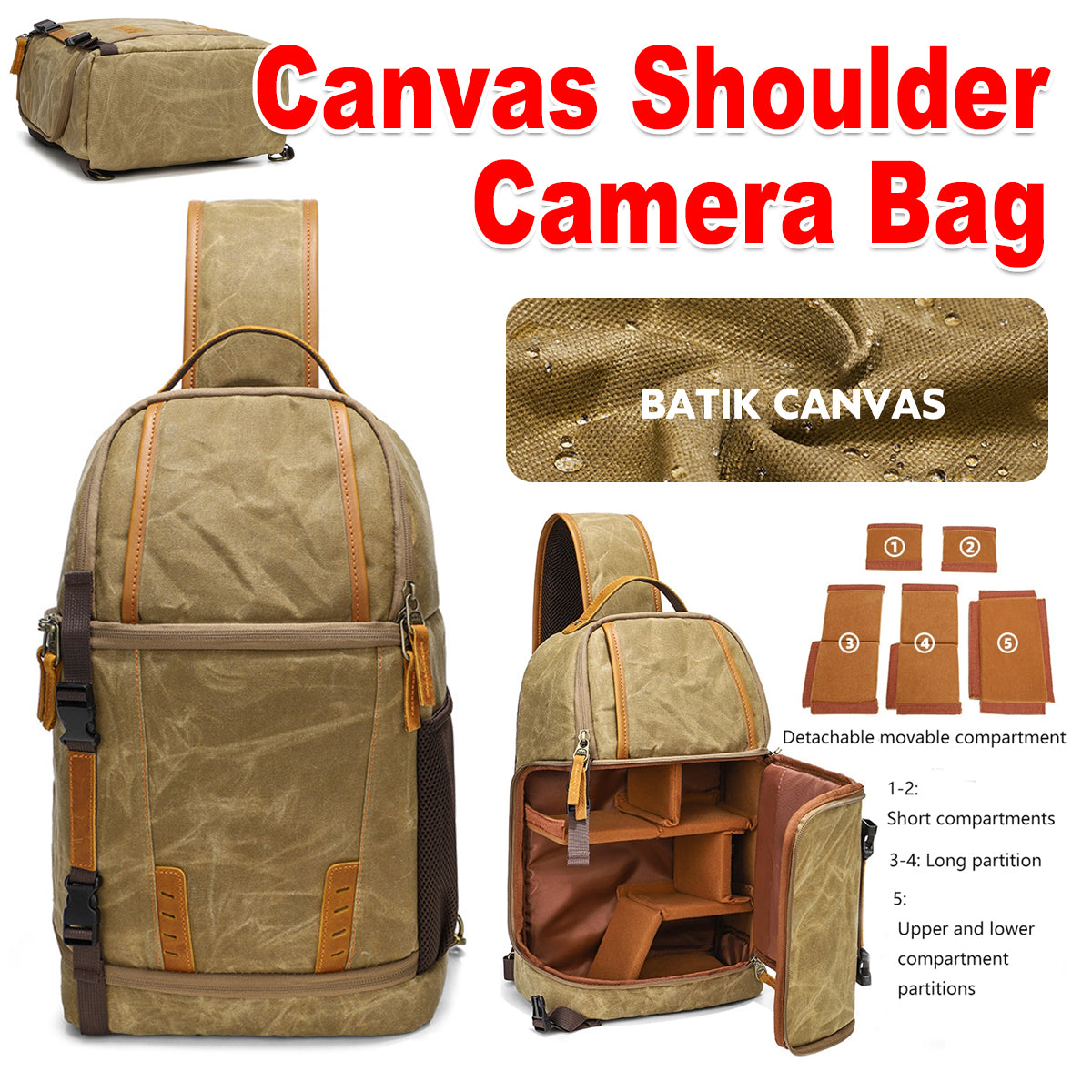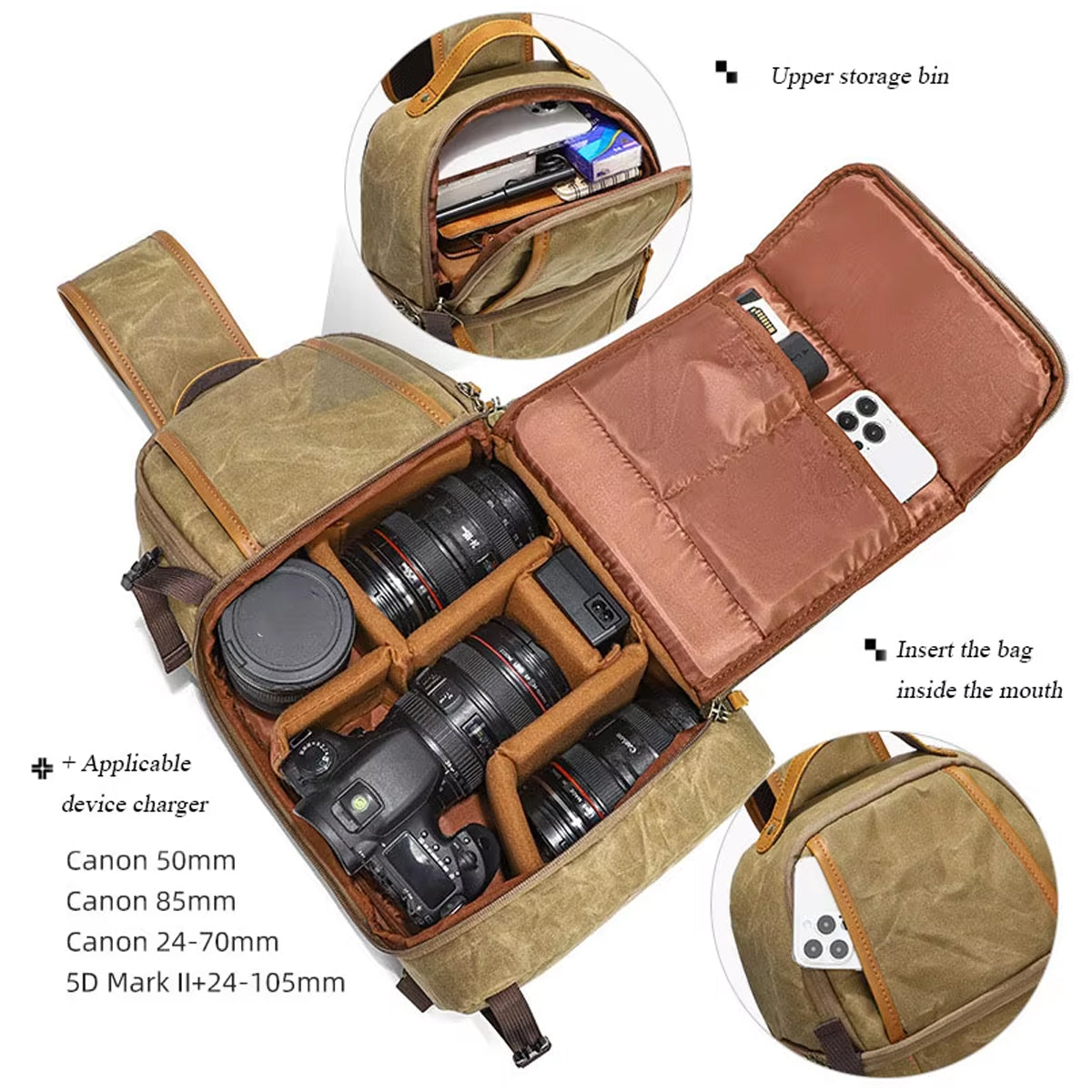 Canvas Shoulder Camera Bag Waterproof Durable for DSLR Mirrorless Cameras Lens