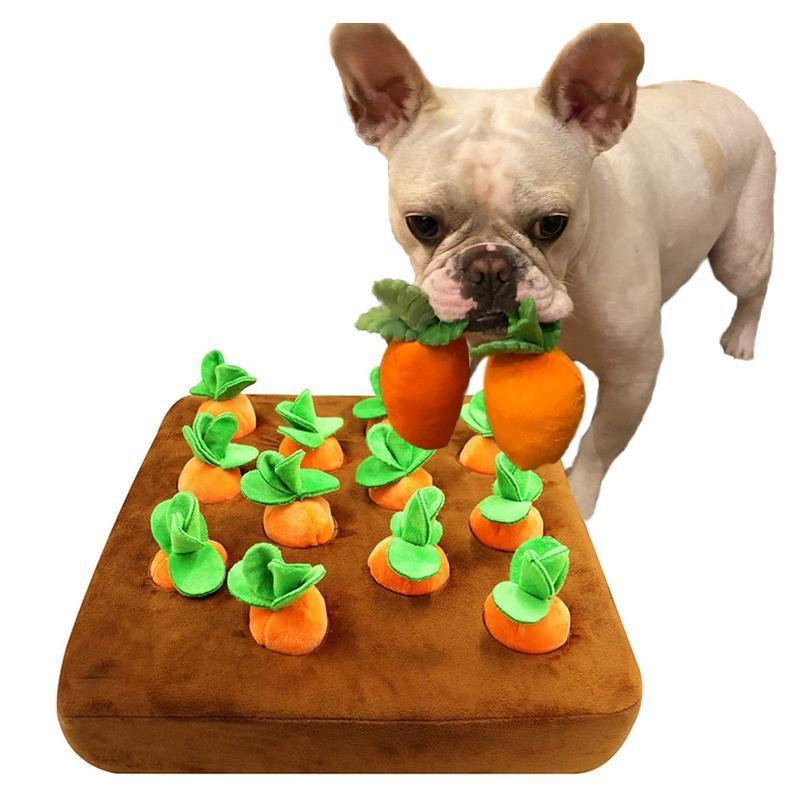 Carrot Plush Dog Toy Foraging Interactive Puzzle Mat for Small Puppies 35x35cm