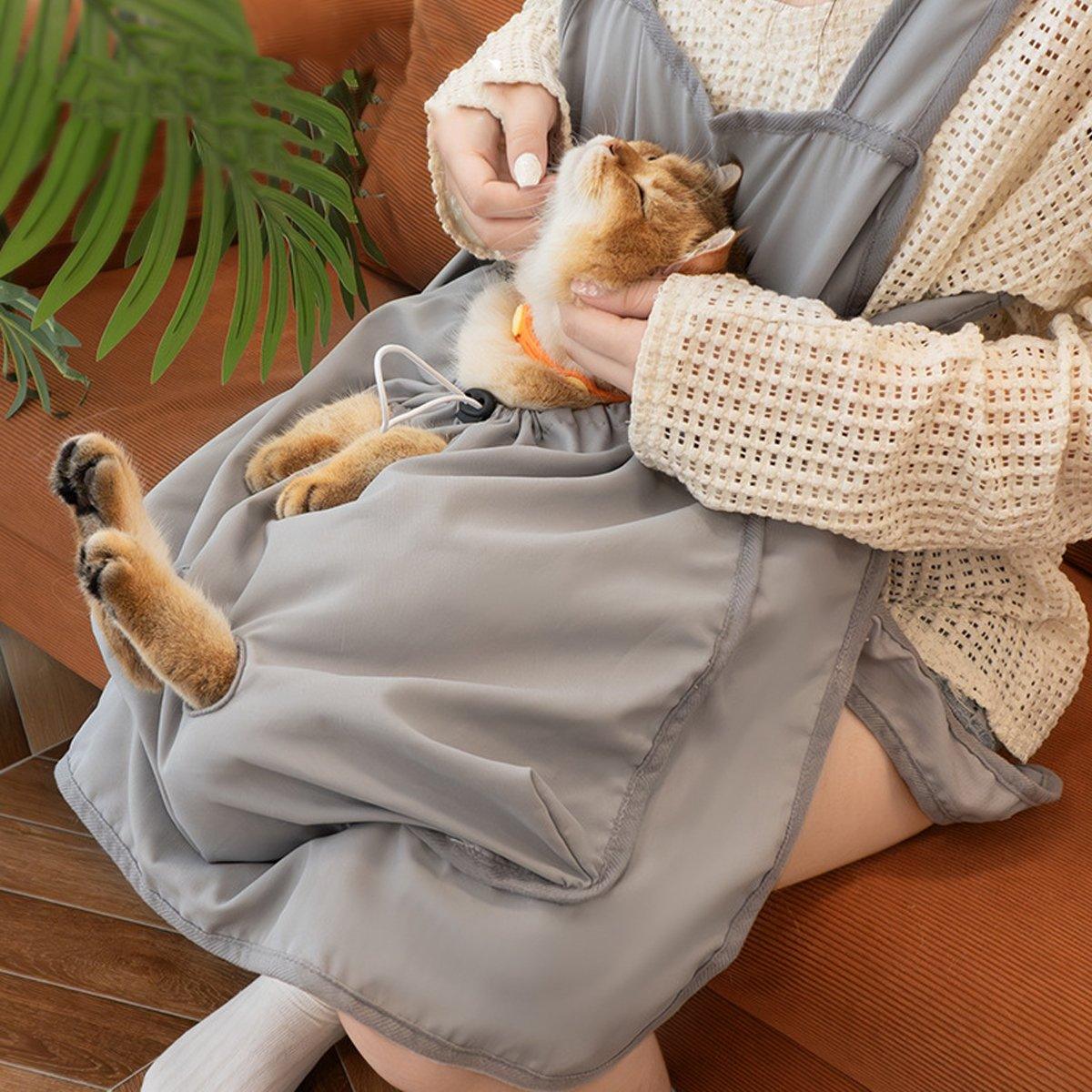 Cat Carrying Apron Non Stick Hair Kangaroo Pouch Pet Grooming Suit Portable