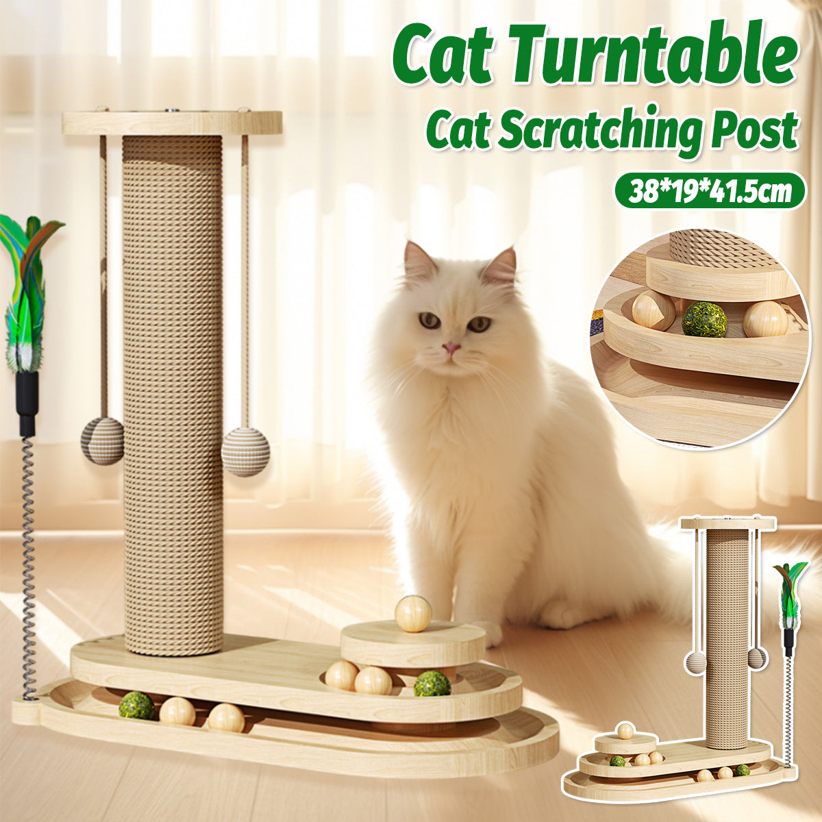 Cat Scratching Post Oval Turntable Cat Toy Scratcher Board Interactive Furniture