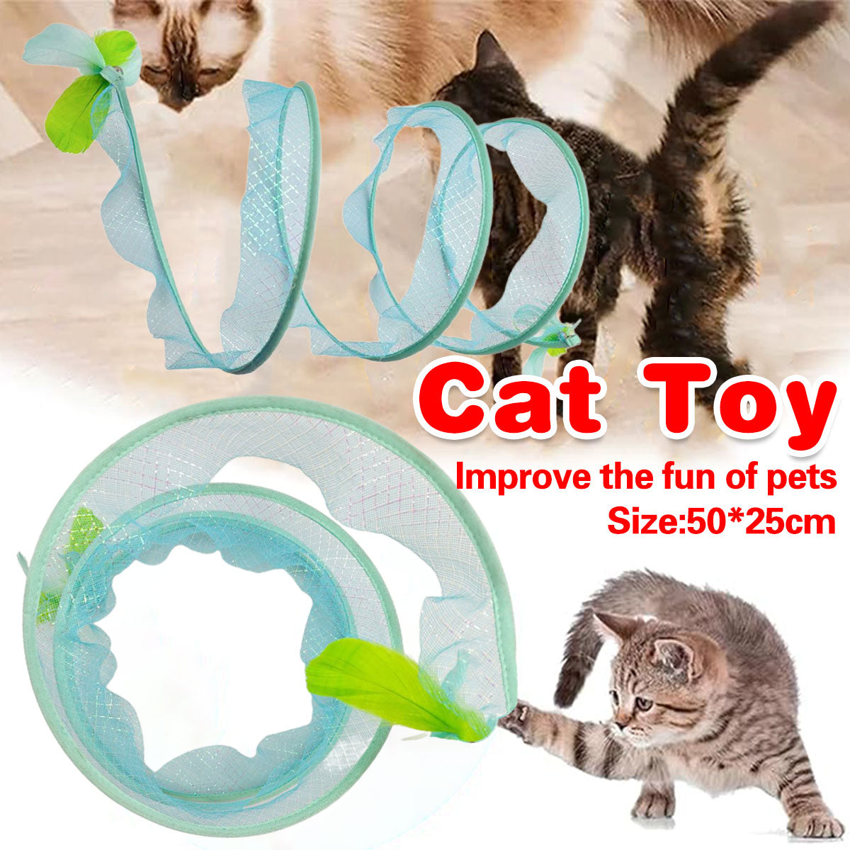 Cat Tunnel Toy Set Collapsible Cat Tube with Teaser Wand Feather Toy Indoor Play