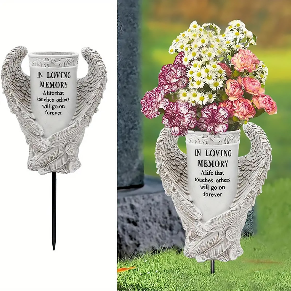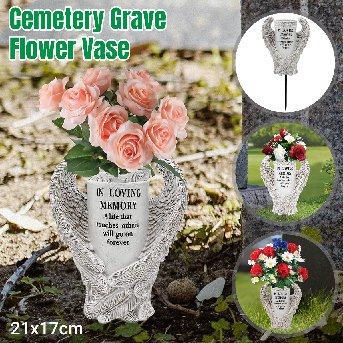 Cemetery Decoration Angel Wing Memorial Vase for Grave Memorial Garden Use
