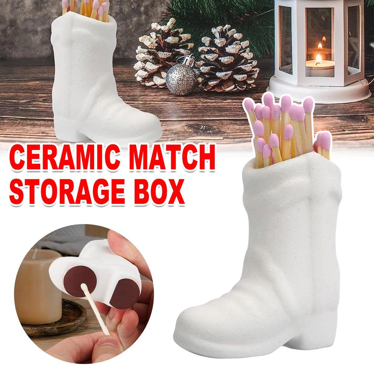 Ceramic Boots Matchbox Holder Home Storage Organizer Decorative Display Box