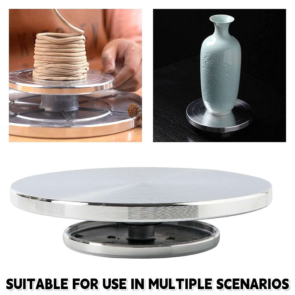Ceramic Manual Turntable Aluminum Alloy Revolving Stand Double-Sided Usable